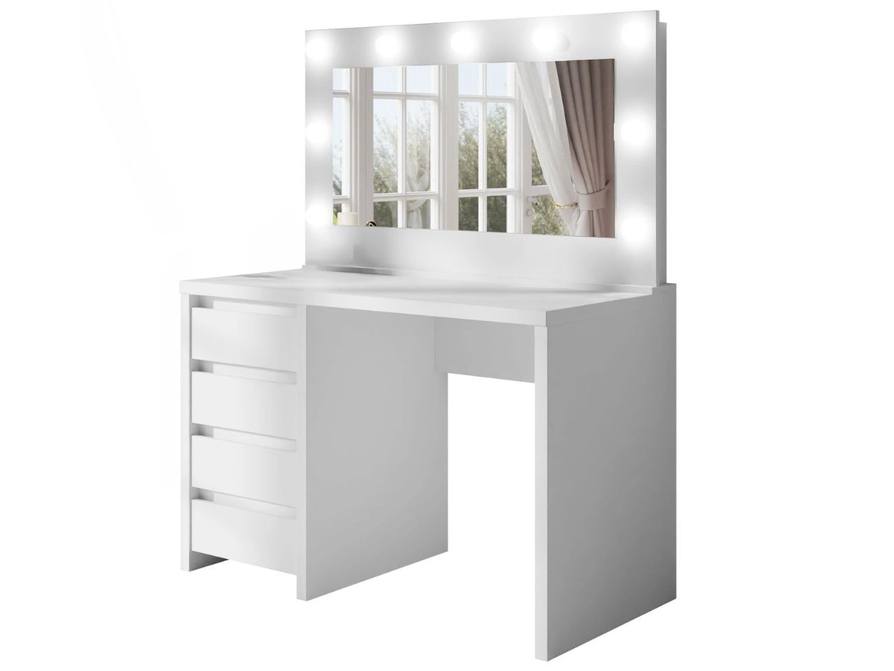 Toaletka kosmetyczna z szerokim lustrem, szufladami i oświetleniem LED Nesso biały mat