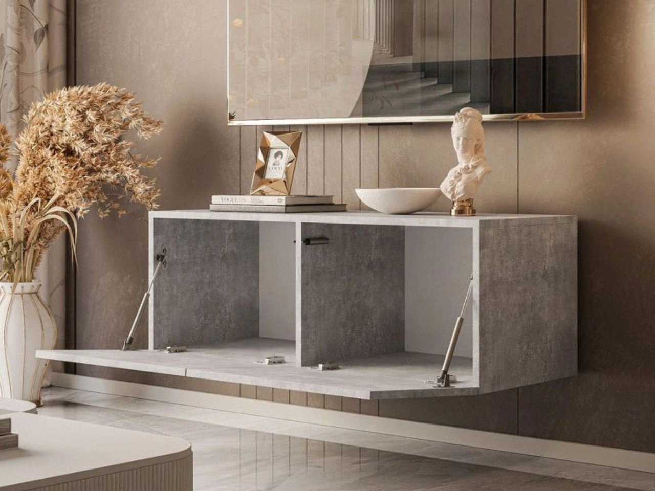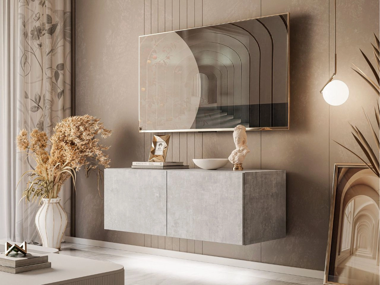 Wisząca szafka RTV pod telewizor z drzwiczkami i oświetleniem LED 100 cm Nodoo Beton