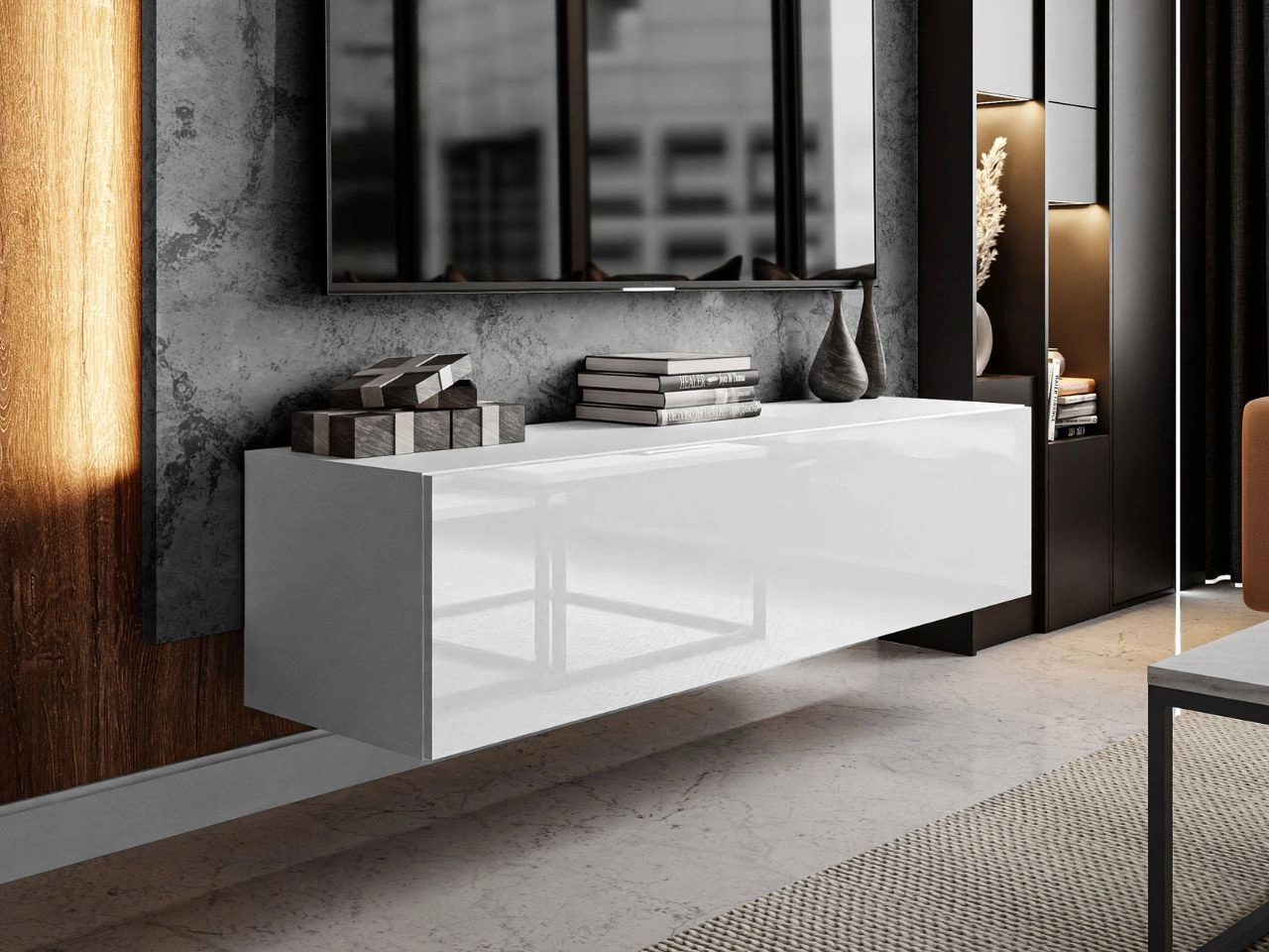 Wisząca szafka RTV pod telewizor z drzwiczkami 150 cm Nodoo Biały połysk