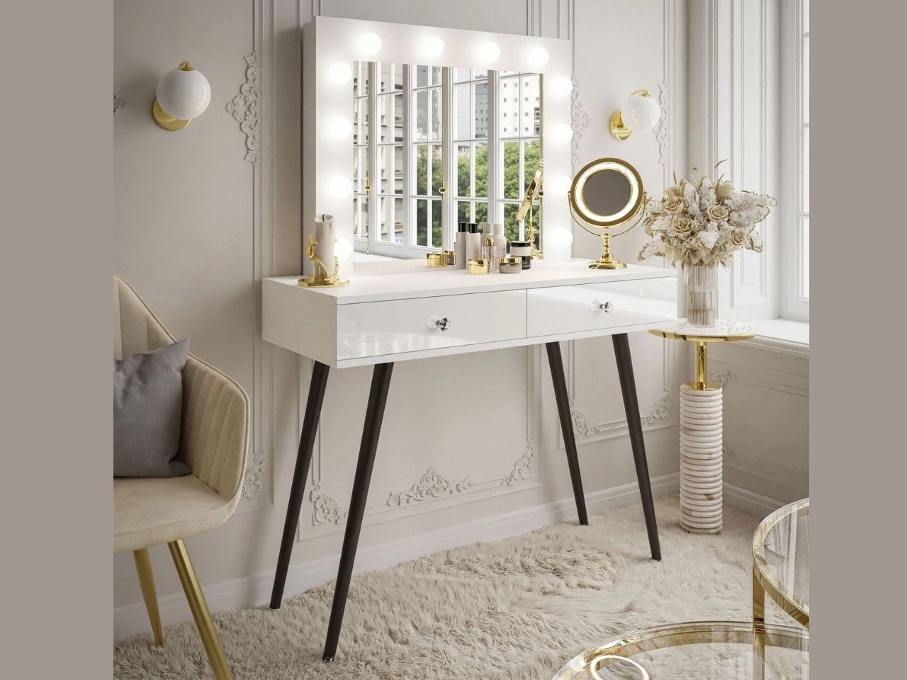 Toaletki kosmetyczne na dobre zadomowiły się w sypialniach – tworzą prywatny kącik, w którym komfortowo wykonasz codzienną pielęgnację i makijaż. Właśnie taką funkcję spełnia toaletka Olivine z oświetleniem LED: połączenie eleganckiego wzornictwa z praktycznymi detalami, zaprojektowane z myślą o wygodzie użytkowania.