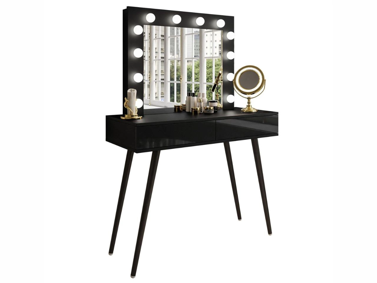 Toaletka glamour z szufladami, lustrem i oświetleniem LED Olivine czarny połysk