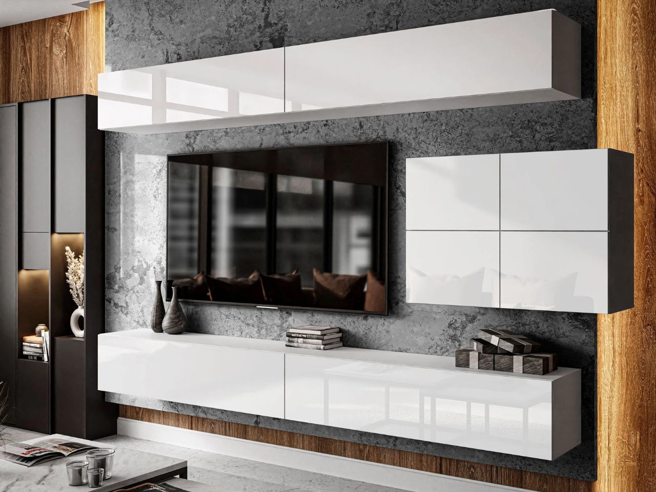 Wisząca meblościanka do salonu Nodoo Biały połysk