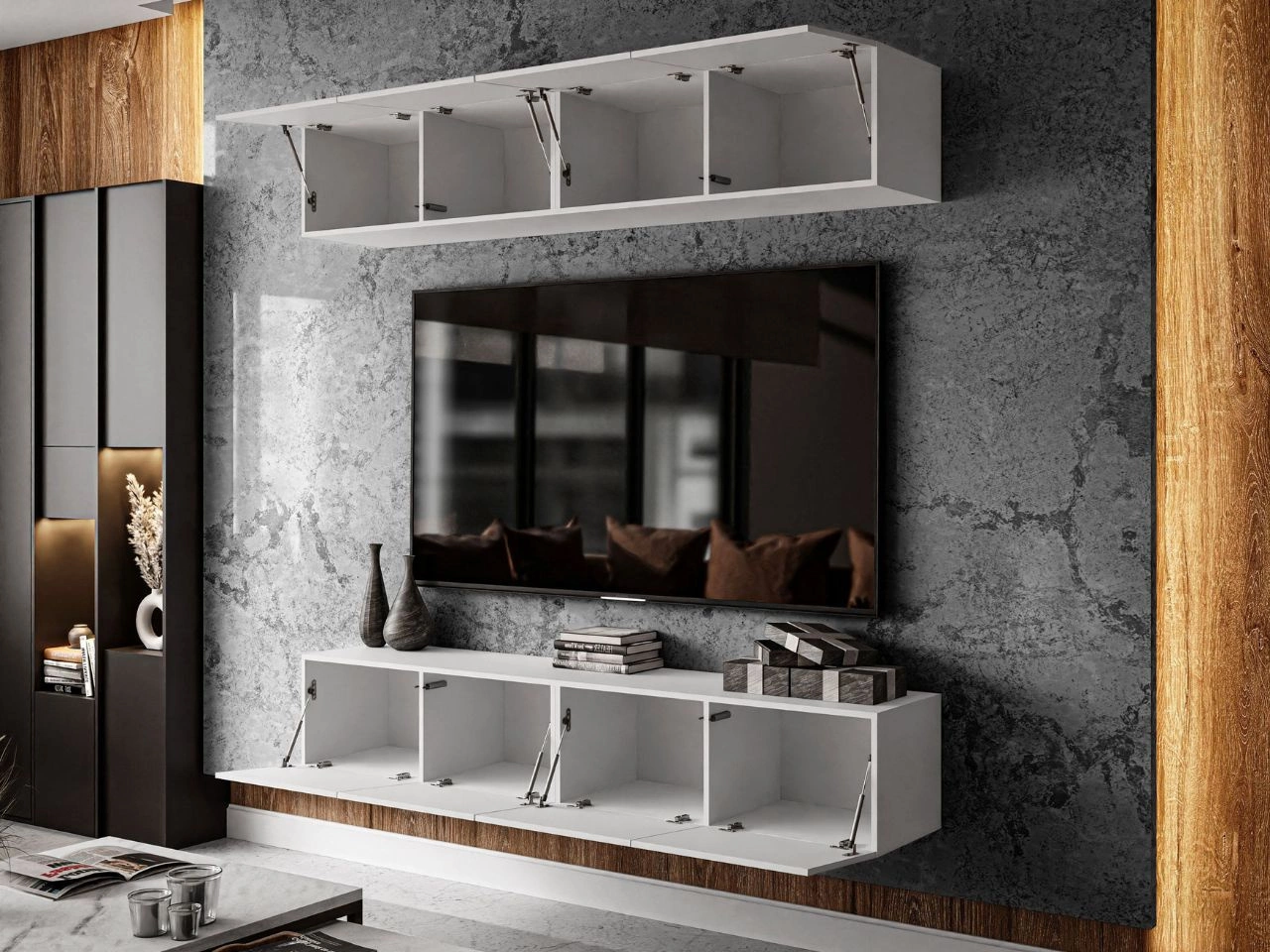 Wisząca meblościanka do salonu z oświetleniem LED Nodoo Biały połysk
