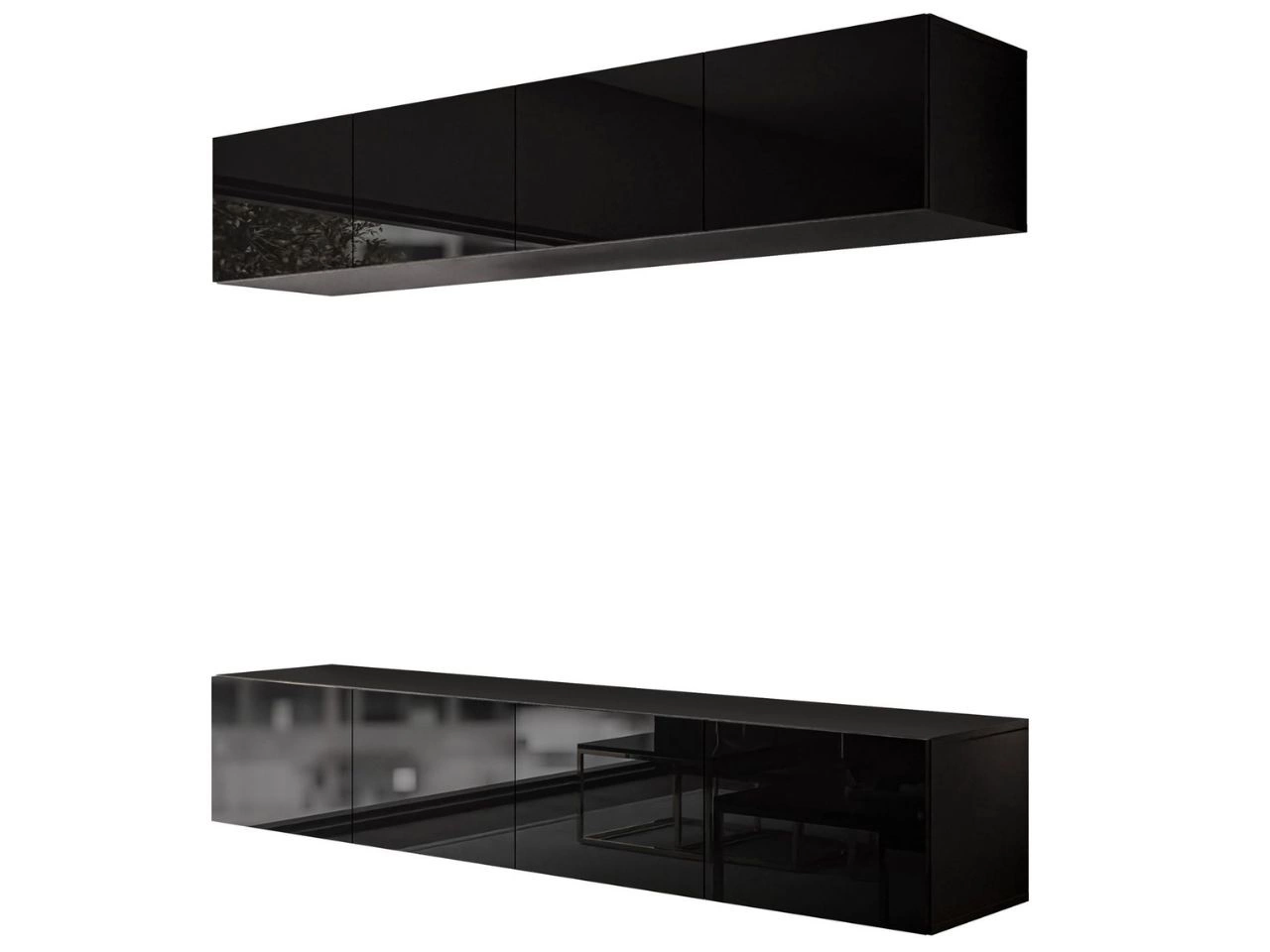 Wisząca meblościanka do salonu Nodoo Czarny połysk
