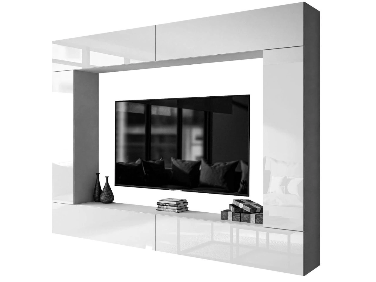 Wisząca meblościanka do salonu z oświetleniem LED Nodoo Biały połysk