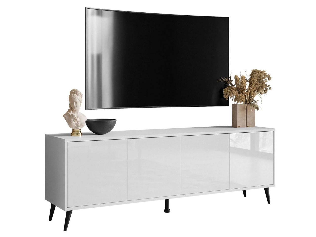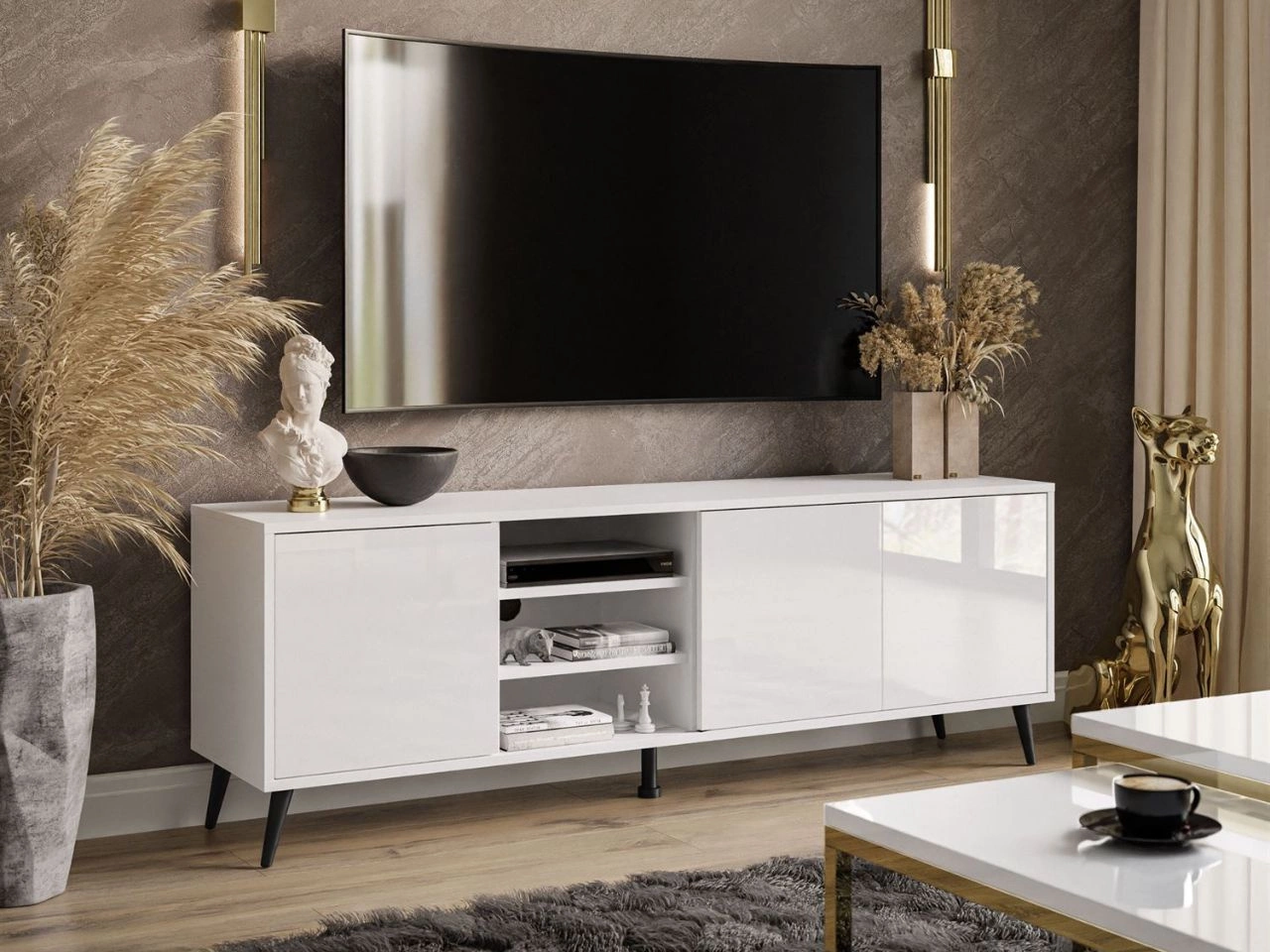 Szafka RTV pod telewizor z drzwiczkami na czarnych nogach Vivance Biały połysk