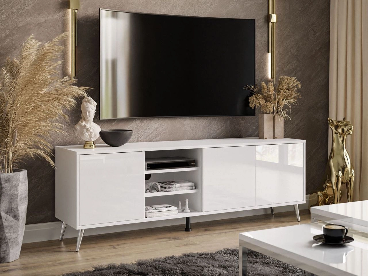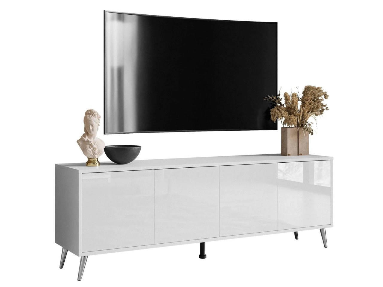 Szafka RTV pod telewizor z drzwiczkami na srebrnych nogach Vivance Biały połysk