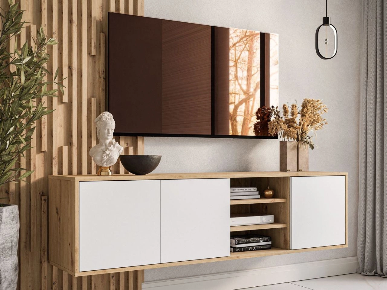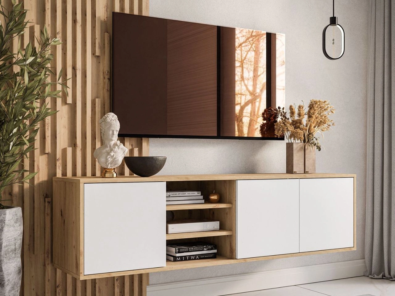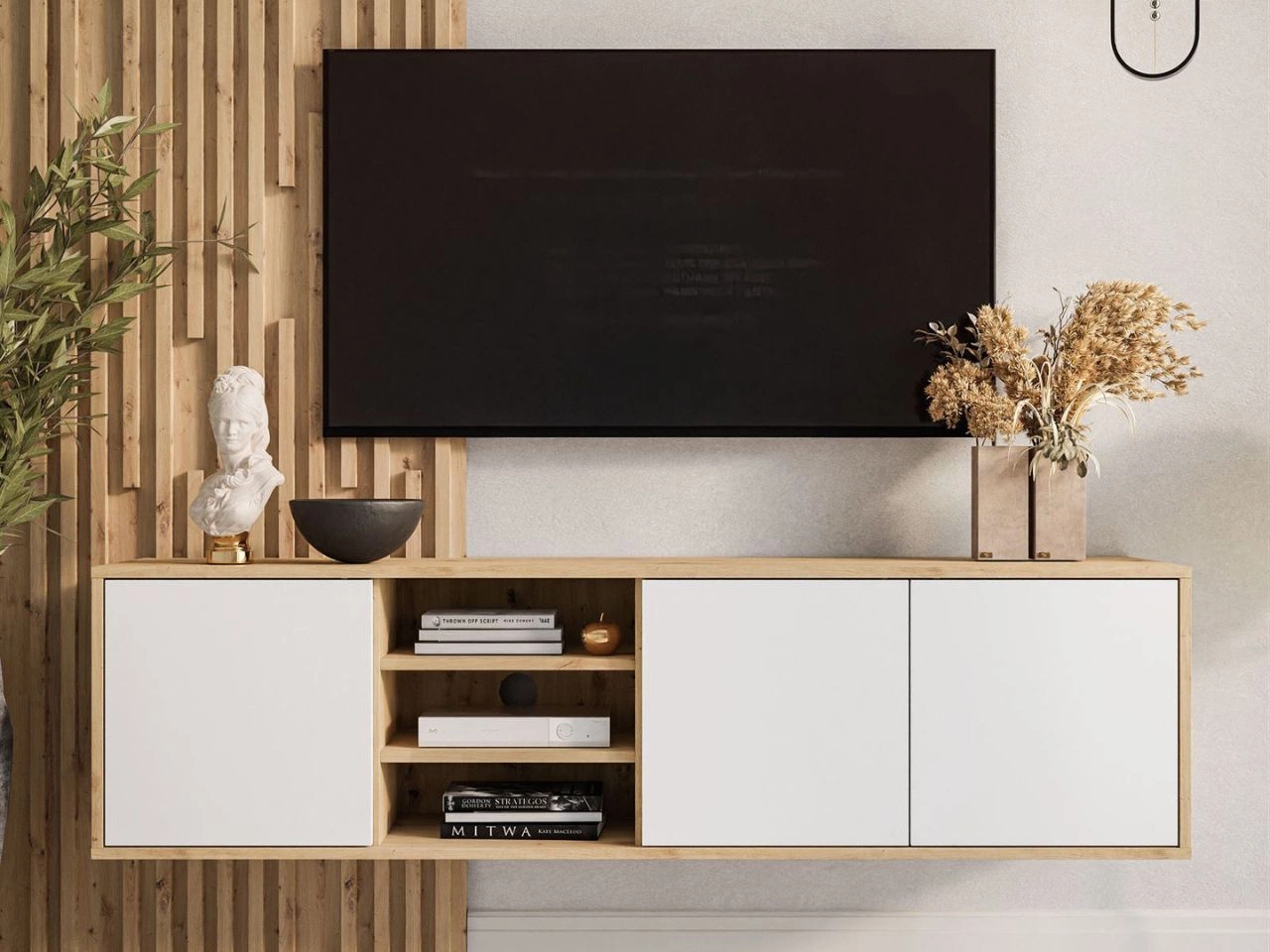 Szafka RTV pod telewizor wisząca z drzwiczkami Vivance Biały i dąb artisan