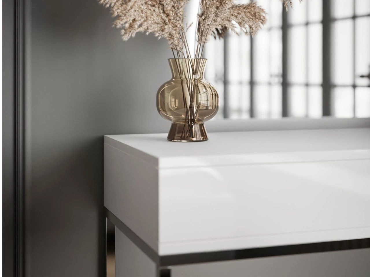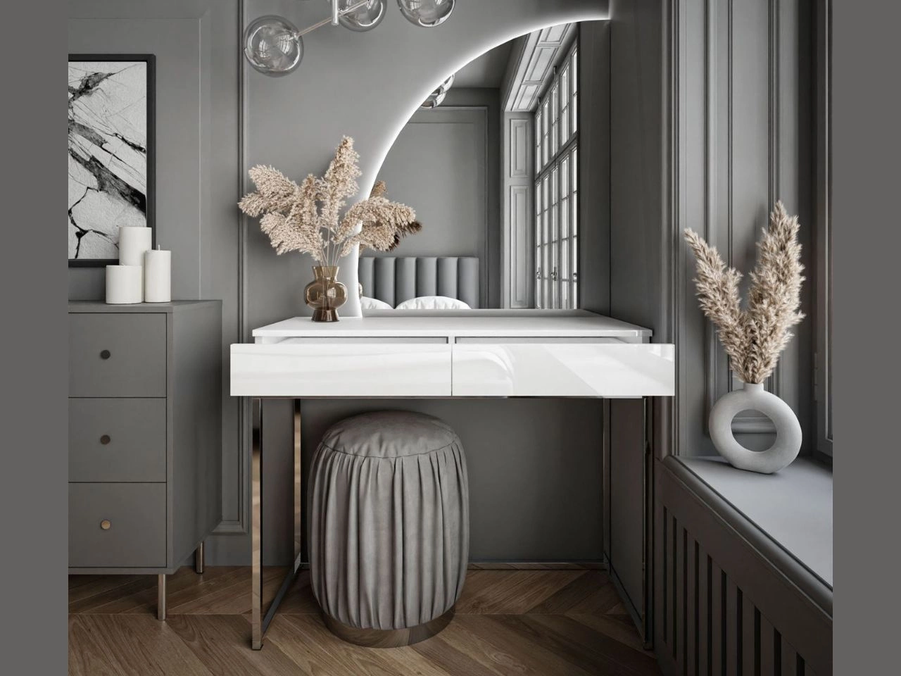 Wyposażona w dwie pojemne szuflady otwierane w systemie PUSH TO OPEN i osadzone na prowadnicach kulkowych z pełnym wysuwem, toaletka Clarette pozwala wygodnie przechowywać kosmetyki, akcesoria i drobiazgi, ułatwiając utrzymanie porządku. Stabilna podstawa w eleganckim wykończeniu podkreśla lekkość konstrukcji, a jednocześnie wprowadza do przestrzeni nutę luksusu i harmonii. To idealny wybór dla osób, które chcą połączyć estetykę z praktycznością.