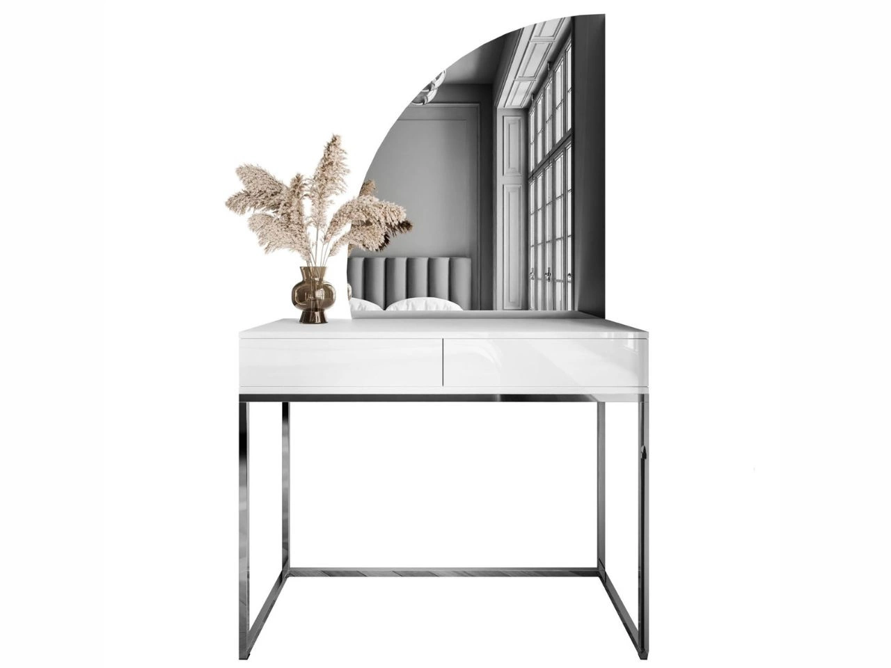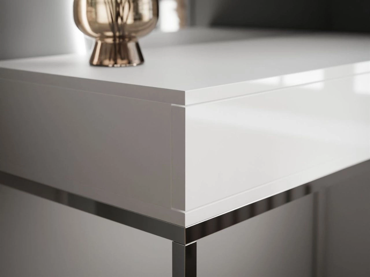 Toaletka kosmetyczna lewostronna z szufladami i oświetleniem LED na srebrnych nogach Clarette Biały połysk