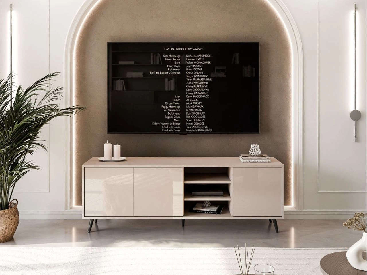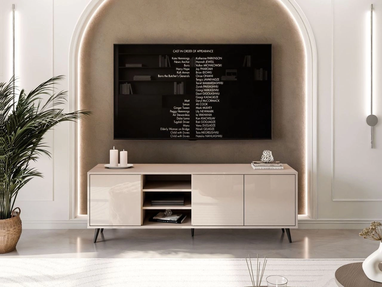 Szafka RTV pod telewizor z drzwiczkami na czarnych nogach Vivance Kaszmir połysk