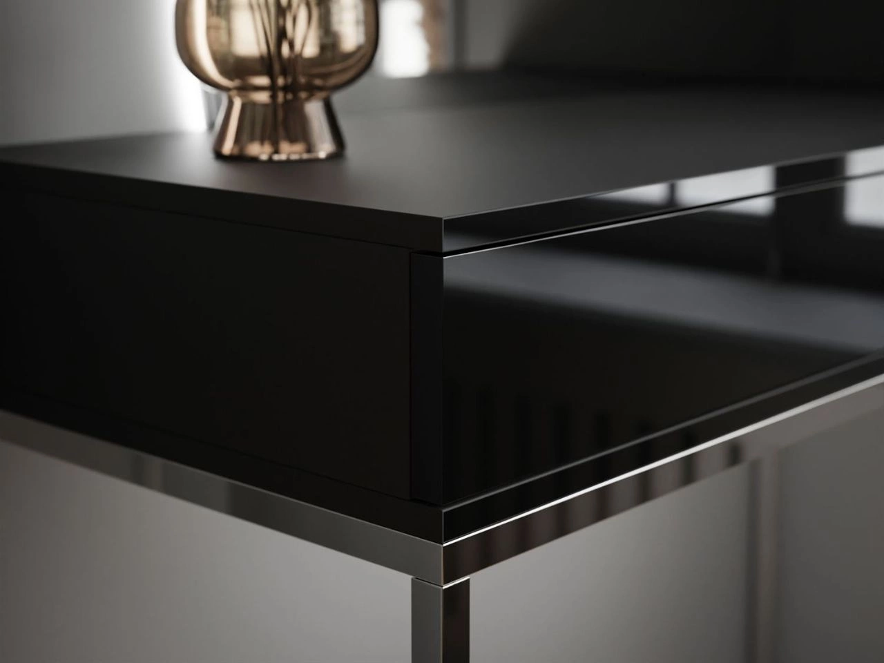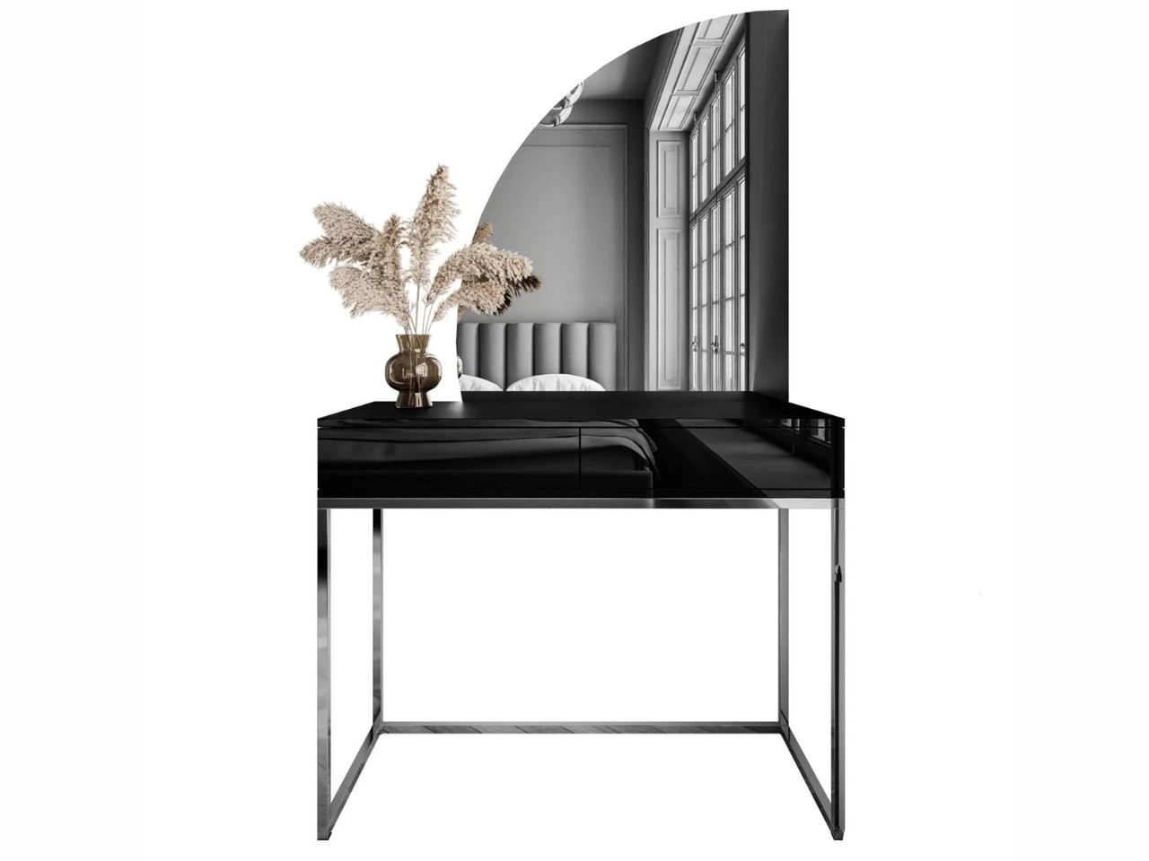 Toaletka kosmetyczna lewostronna z szufladami i oświetleniem LED na srebrnych nogach Clarette Czarny połysk
