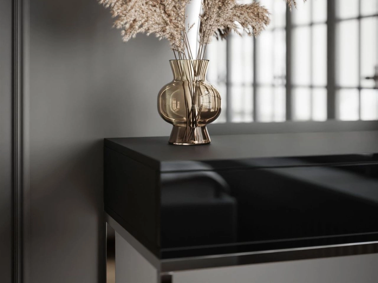 Wyposażona w dwie pojemne szuflady otwierane w systemie PUSH TO OPEN i osadzone na prowadnicach kulkowych z pełnym wysuwem, toaletka Clarette pozwala wygodnie przechowywać kosmetyki, akcesoria i drobiazgi, ułatwiając utrzymanie porządku. Stabilna podstawa w eleganckim wykończeniu podkreśla lekkość konstrukcji, a jednocześnie wprowadza do przestrzeni nutę luksusu i harmonii. To idealny wybór dla osób, które chcą połączyć estetykę z praktycznością.