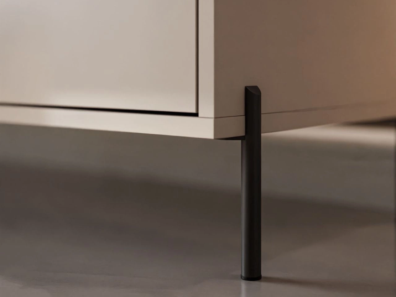 Szafka telewizyjna Vivance wykonana została z wysokiej klasy płyty laminowanej, której obrzeża zabezpieczono okleiną ABS chroniącą przed powstawaniem drobnych zarysowań i uszkodzeń mechanicznych. W tylnej ściance wycięto okrągły otwór, pozwalający na estetyczne wyprowadzenie przewodów i kabli na zewnątrz. Fronty wykończone są w wysokim połysku, korpus natomiast w macie. Całość postawiona jest na estetycznych nóżkach z metalu.