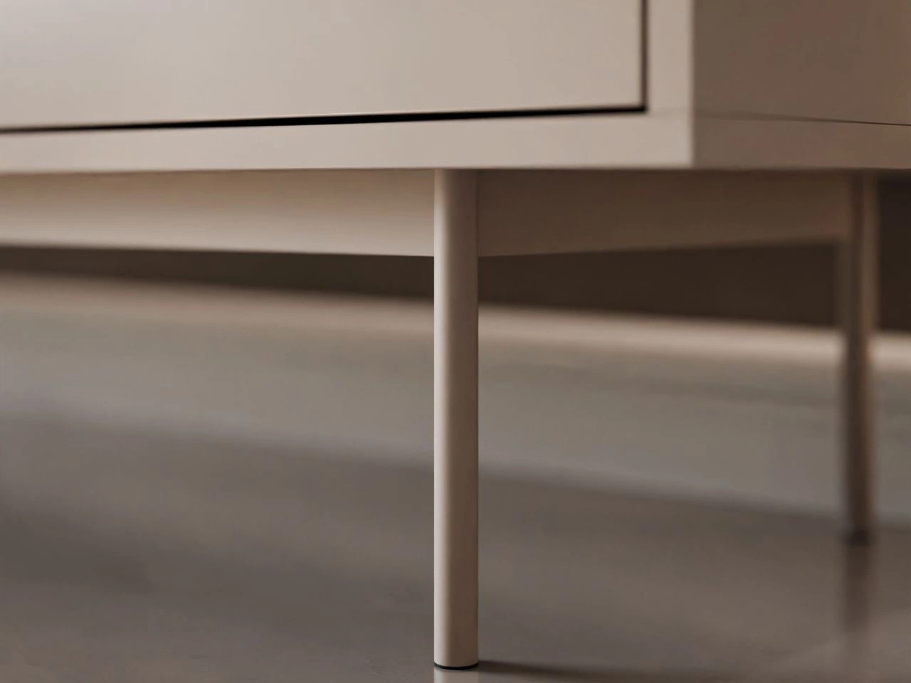 Szafka telewizyjna Vivance wykonana została z wysokiej klasy płyty laminowanej, której obrzeża zabezpieczono okleiną ABS chroniącą przed powstawaniem drobnych zarysowań i uszkodzeń mechanicznych. W tylnej ściance wycięto okrągły otwór, pozwalający na estetyczne wyprowadzenie przewodów i kabli na zewnątrz. Fronty wykończone są w wysokim połysku, korpus natomiast w macie. Całość postawiona jest na estetycznych nóżkach z metalu.