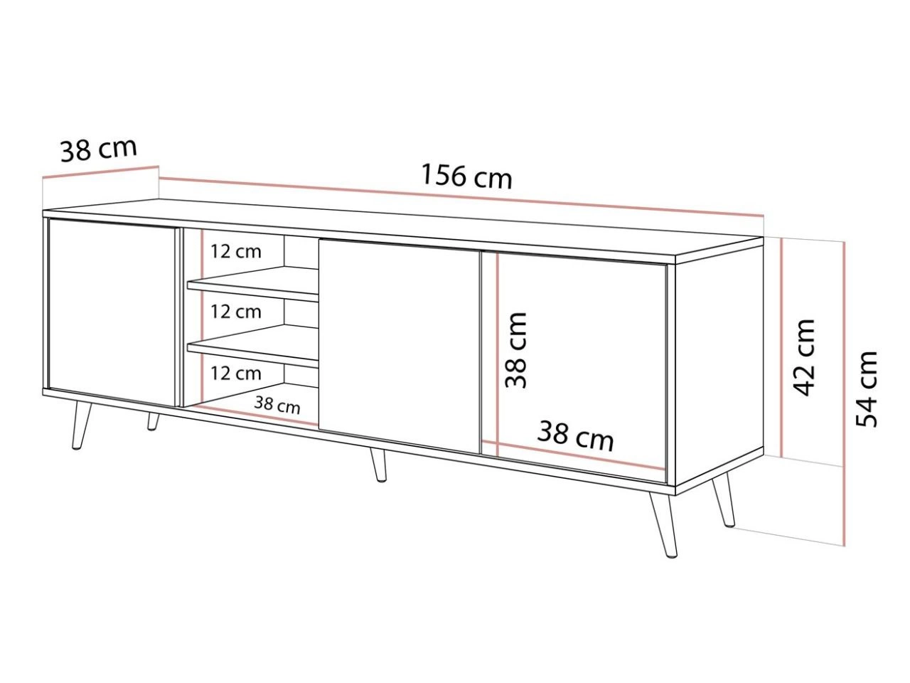 Szafka telewizyjna Vivance wykonana została z wysokiej klasy płyty laminowanej, której obrzeża zabezpieczono okleiną ABS chroniącą przed powstawaniem drobnych zarysowań i uszkodzeń mechanicznych. W tylnej ściance wycięto okrągły otwór, pozwalający na estetyczne wyprowadzenie przewodów i kabli na zewnątrz. Fronty wykończone są w wysokim połysku, korpus natomiast w macie. Całość postawiona jest na estetycznych nóżkach z metalu.