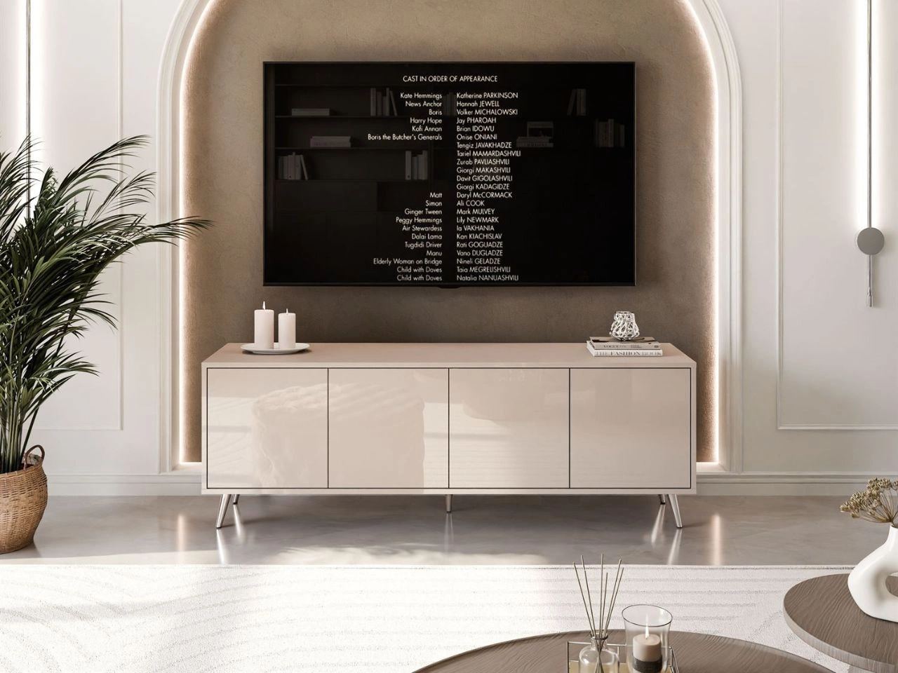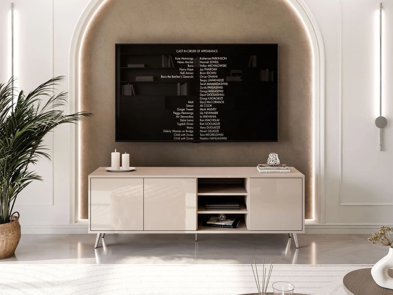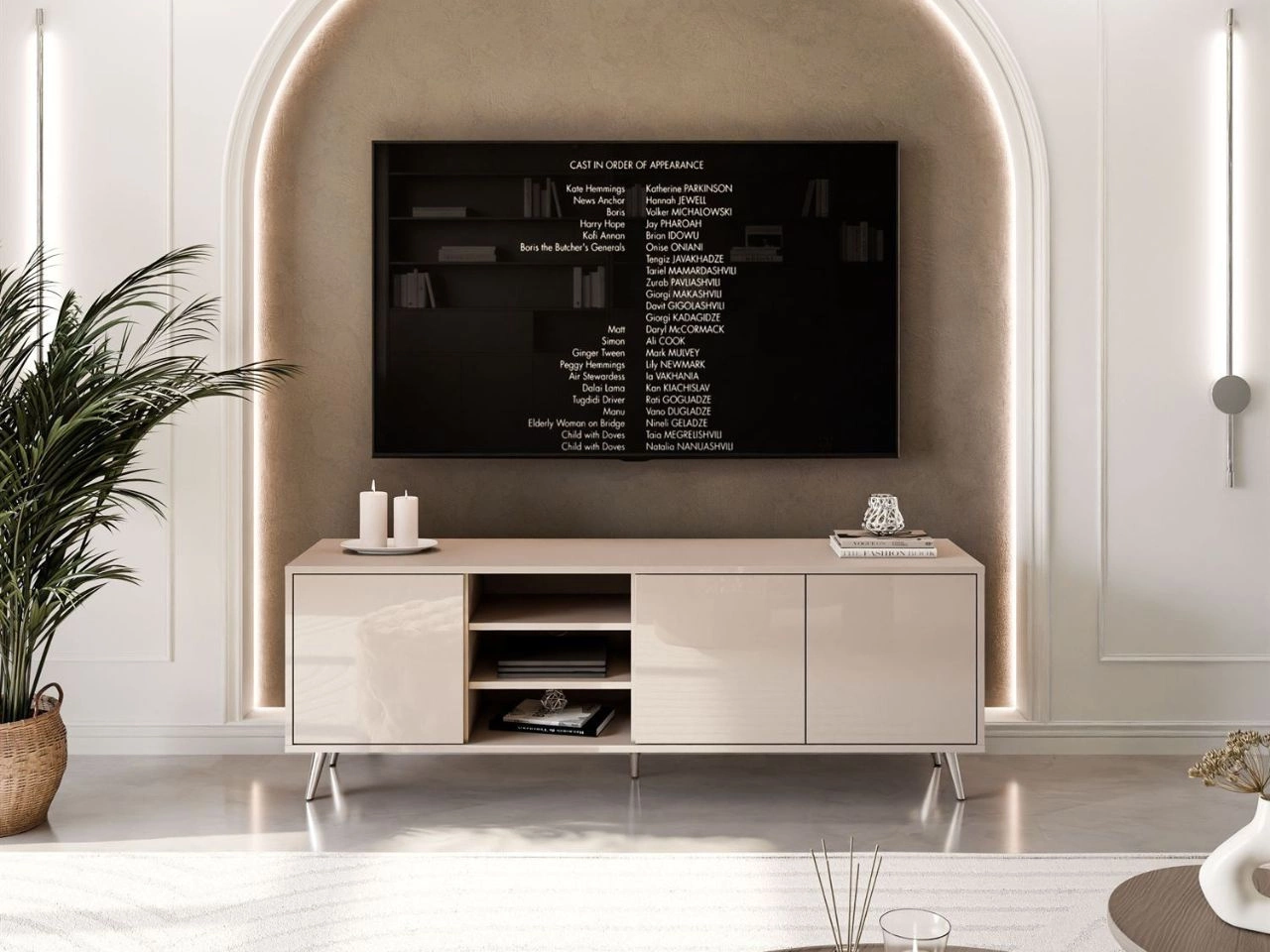 Szafka RTV pod telewizor z drzwiczkami na srebrnych nogach Vivance Kaszmir połysk
