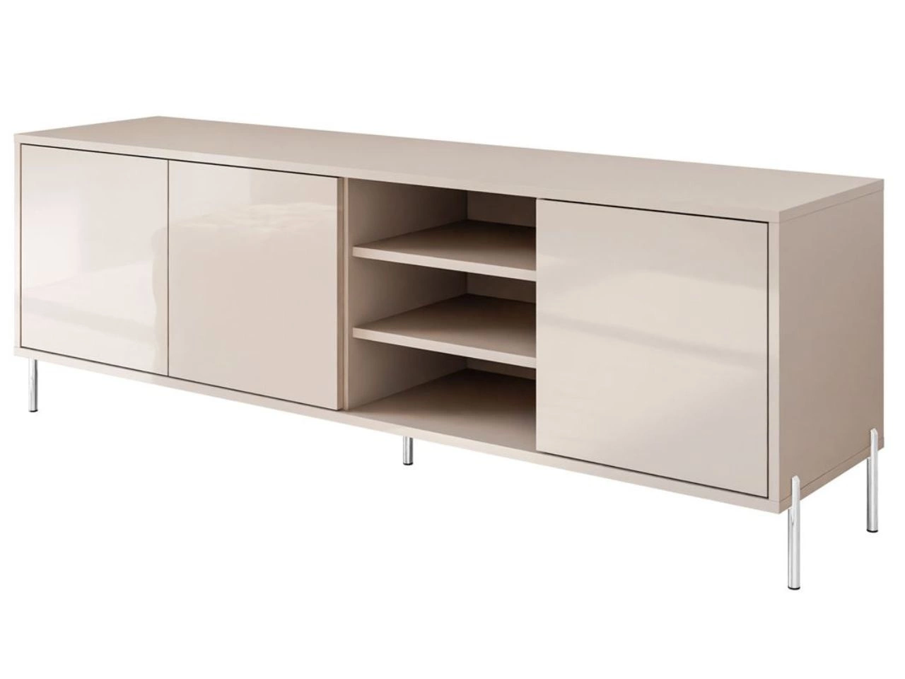 Szafka RTV glamour pod telewizor z drzwiczkami na srebrnych prostych nogach Vivance Kaszmir połysk