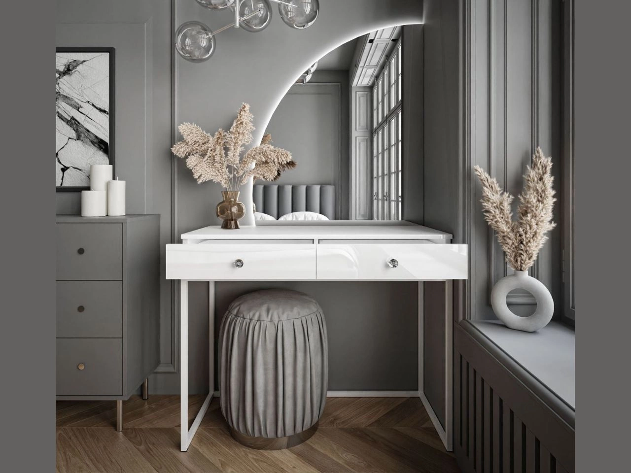 Szukasz mebla, który połączy elegancję, funkcjonalność i nowoczesny charakter? Toaletka Clarette z lustrem i oświetleniem LED to idealne rozwiązanie dla osób ceniących minimalistyczny design i praktyczne detale. Jej subtelna forma i dekoracyjne wykończenie sprawiają, że świetnie odnajdzie się w aranżacjach nowoczesnych, glamour czy skandynawskich, nadając wnętrzu wyjątkowego stylu.