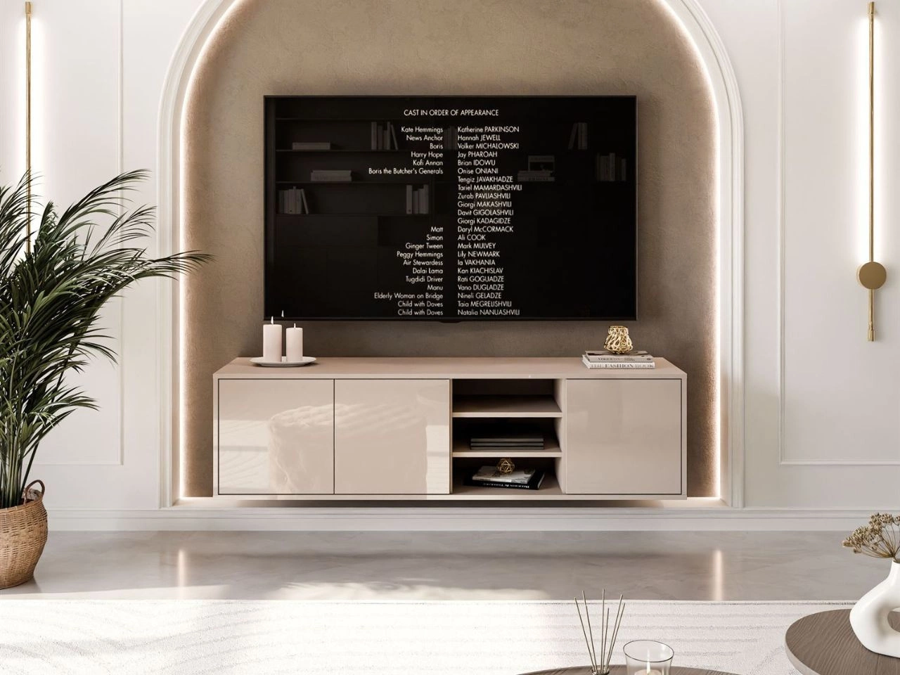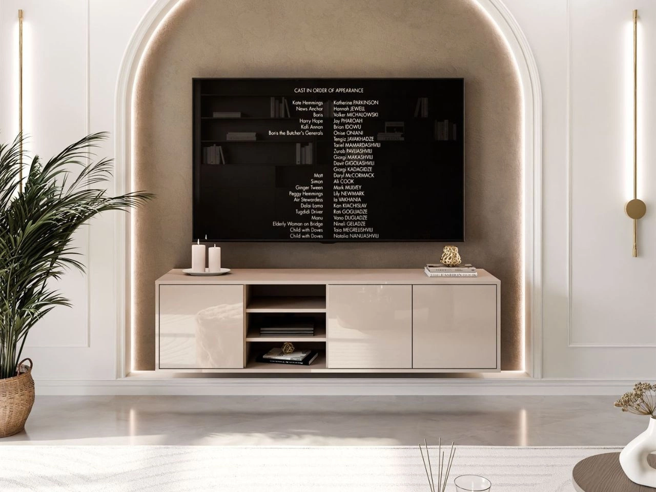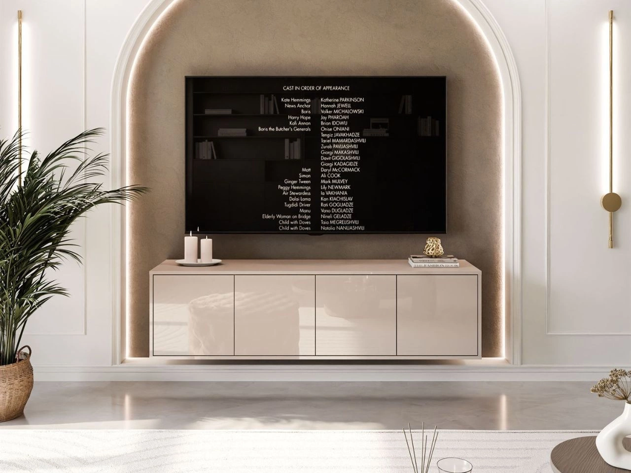 Dobierasz do: Szafka RTV wisząca pod telewizor z drzwiczkami Vivance kaszmir połysk