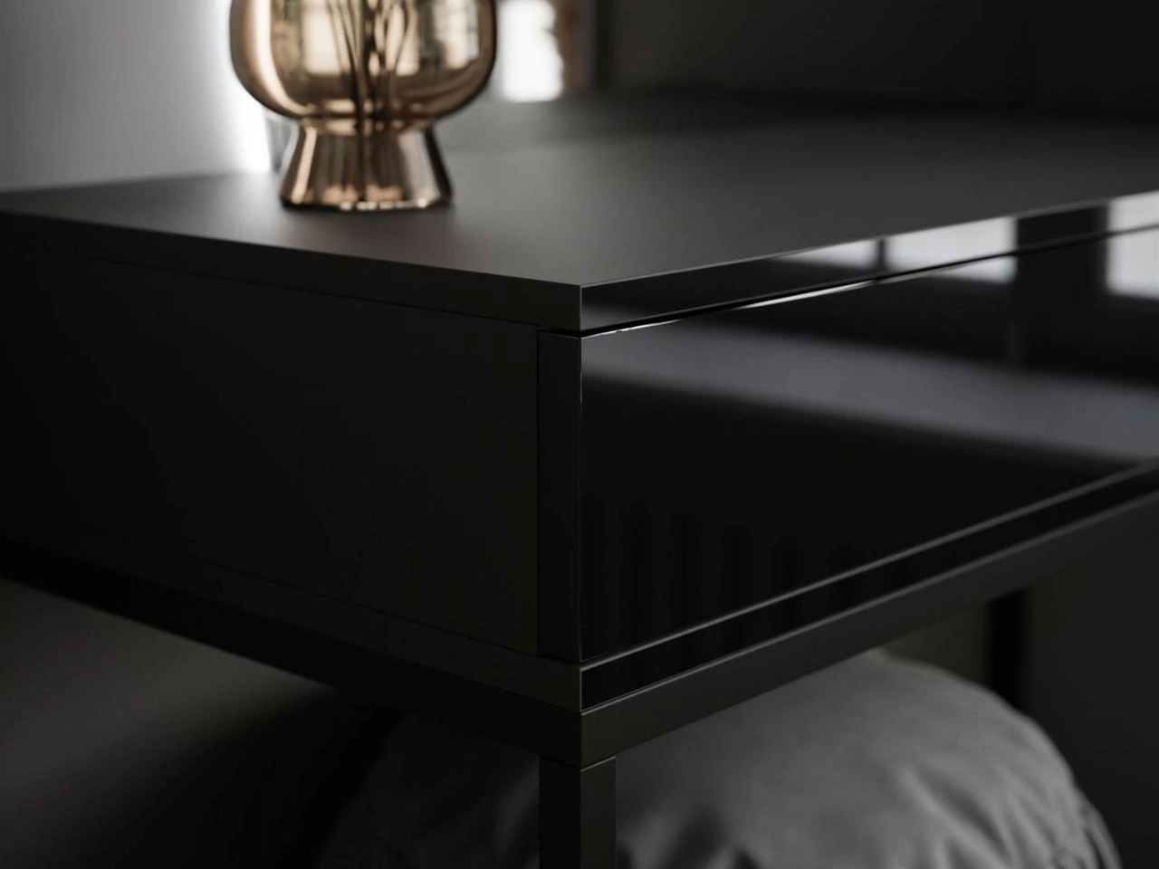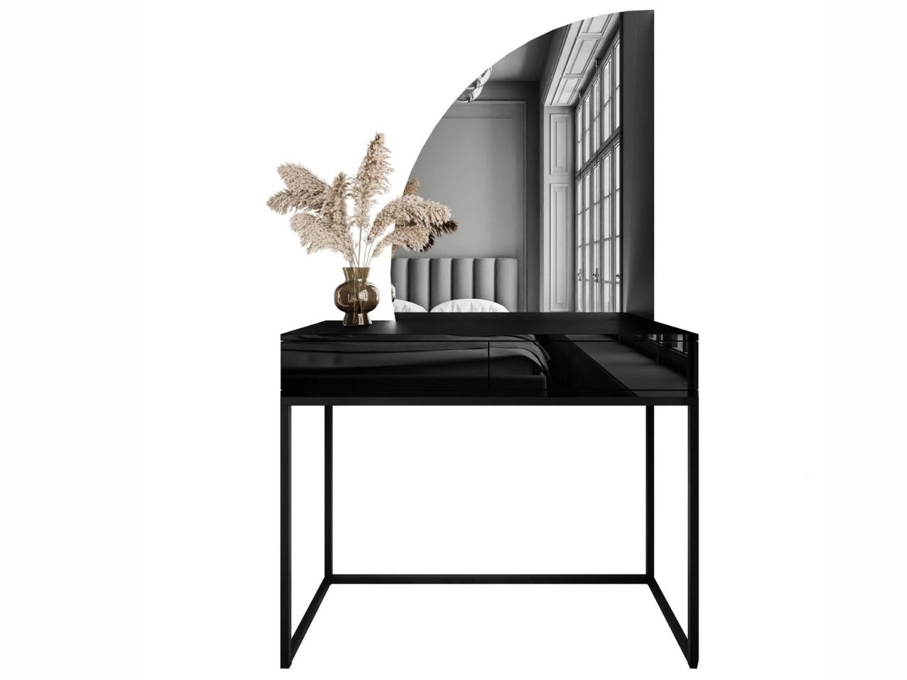 Toaletka kosmetyczna lewostronna z szufladami i oświetleniem LED na czarnych nogach Clarette Czarny połysk