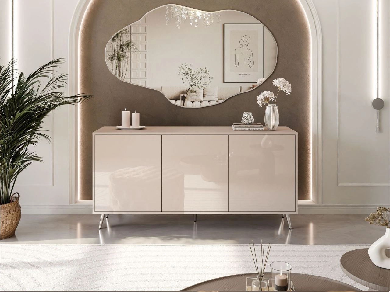Trzydrzwiowa komoda 154 cm w stylu glamour na srebrnych nogach Vivance kaszmir połysk