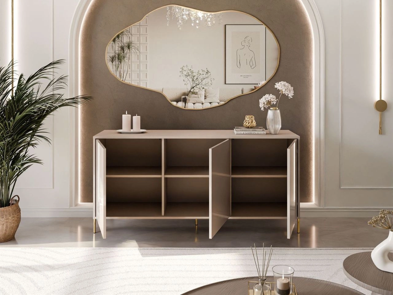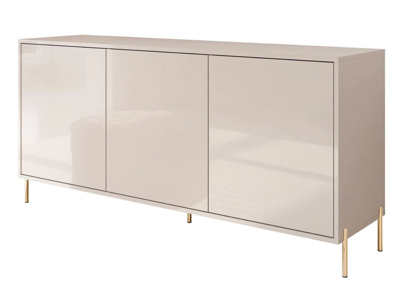 Trzydrzwiowa komoda 154 cm na złotych nogach Vivance kaszmir połysk