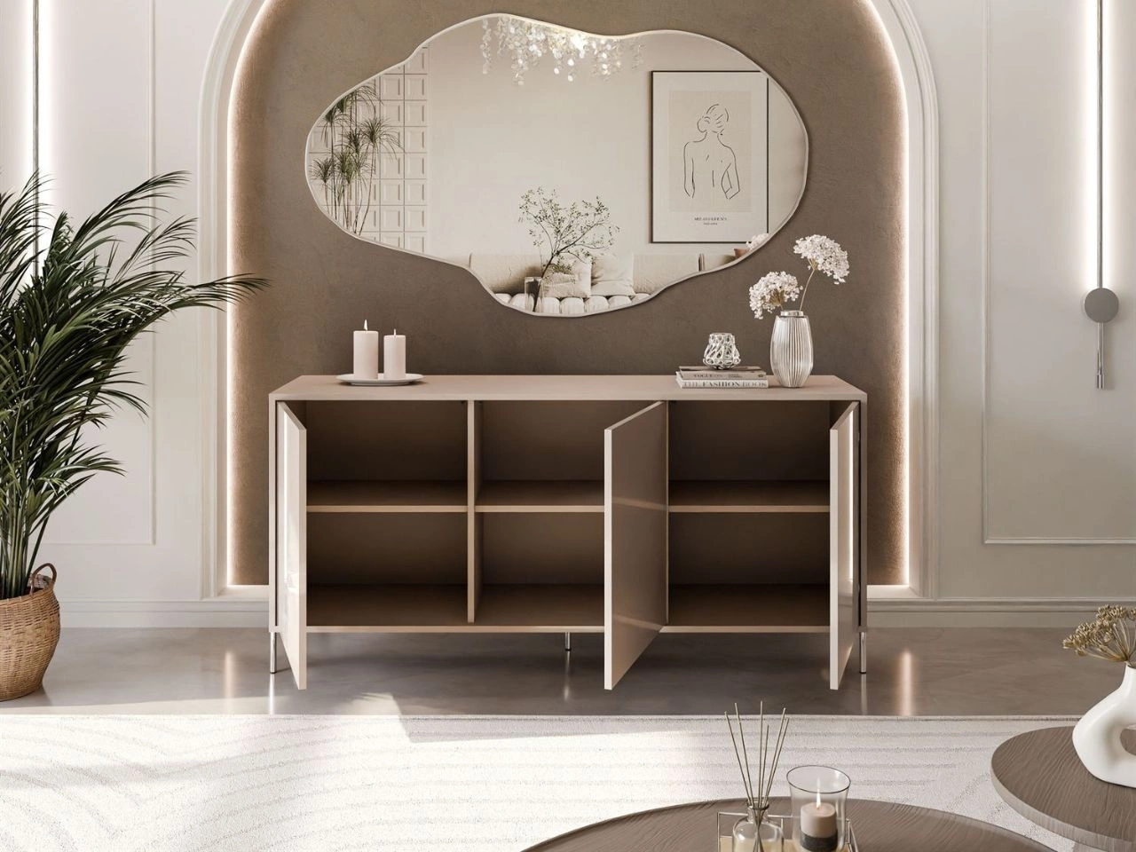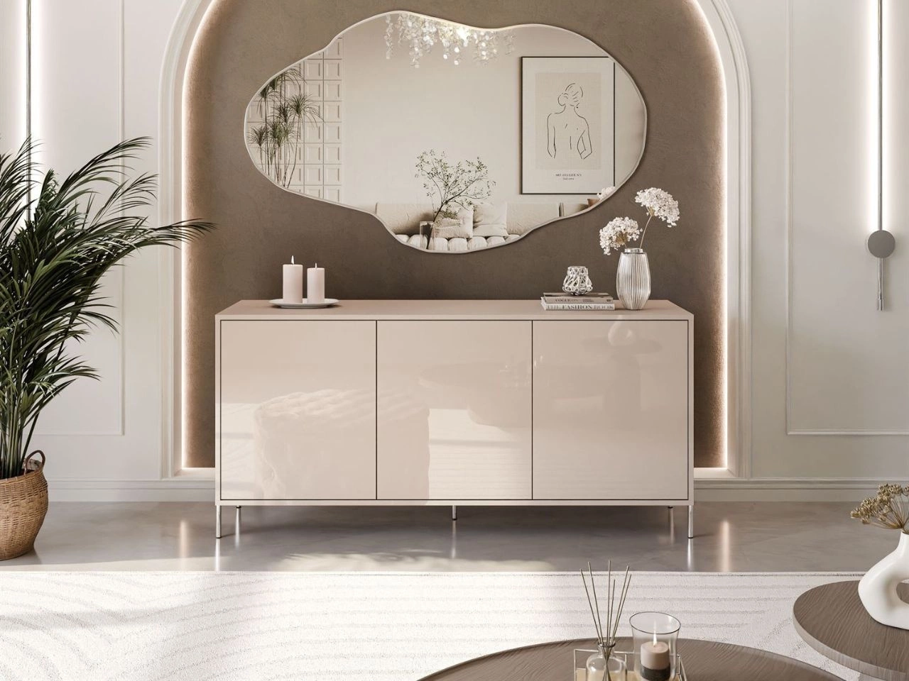 Trzydrzwiowa komoda 154 cm na srebrnych nogach Vivance kaszmir połysk