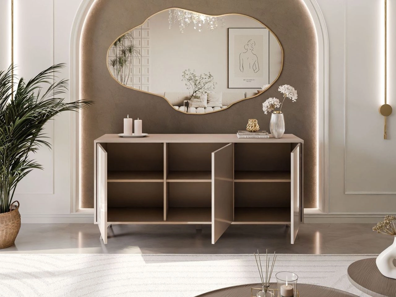 Trzydrzwiowa komoda 154 cm w stylu glamour na kaszmirowych nogach Vivance kaszmir połysk