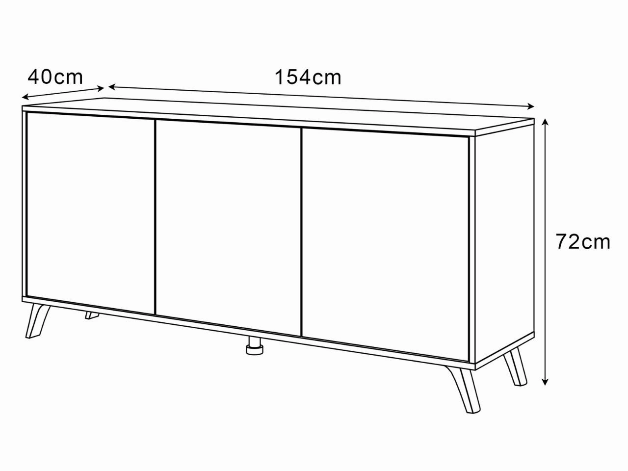 Komoda Vivance charakteryzuje się minimalistycznym designem, który doskonale harmonizuje z nowoczesnymi wnętrzami. Model ten wyposażony został w troje drzwi, za którymi znajdziemy trzy półki. Drzwiczki posiadają bezuchwytowy system otwierania Push To Open, czyli naciśnij, aby otworzyć. Komodę wykonano z wysokiej klasy płyty laminowanej, której obrzeża zabezpieczono okleiną ABS, chroniącą przed powstawaniem zarysowań i drobnych uszkodzeń mechanicznych.