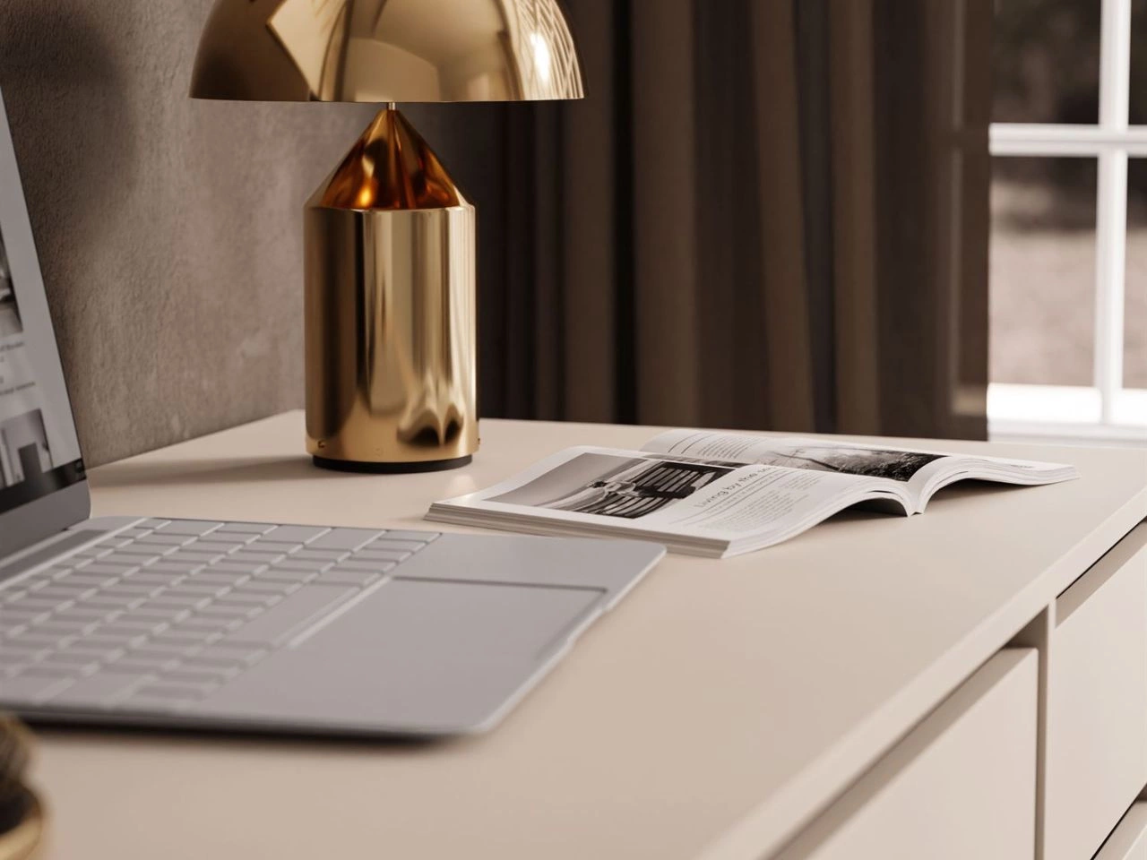 Biurko Melo zostało wyposażone w aż pięć szuflad: cztery wąskie i jedną szeroką. Wąskie szuflady można zamontować zarówno po lewej, jak i po prawej stronie biurka, co czyni je niezwykle wszechstronnym i uniwersalnym. Szuflady posiadają wygodny bezuchwytowy system otwierania, dzięki czemu minimalizm frontów pozostaje niezachwiany. Same szuflady poruszają się gładko i niemal bez oporu, dzięki zastosowaniu prowadnic kulkowych, oferujących pełny wysuw.