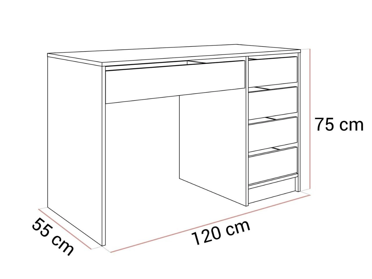 Biurko z pięcioma szufladami Melo kaszmir mat