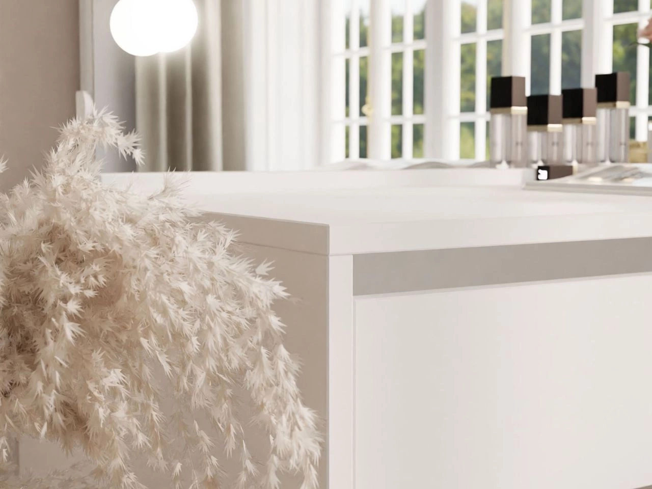 Toaletka Melo Elite to elegancki i funkcjonalny mebel, który doskonale sprawdzi się w każdej sypialni. Tworzy wygodne miejsce do codziennej pielęgnacji i makijażu, jednocześnie wprowadzając do wnętrza odrobinę luksusu i harmonii. Jej nowoczesna forma oraz dopracowane detale czynią z niej propozycję dla osób ceniących zarówno design, jak i praktyczne rozwiązania.