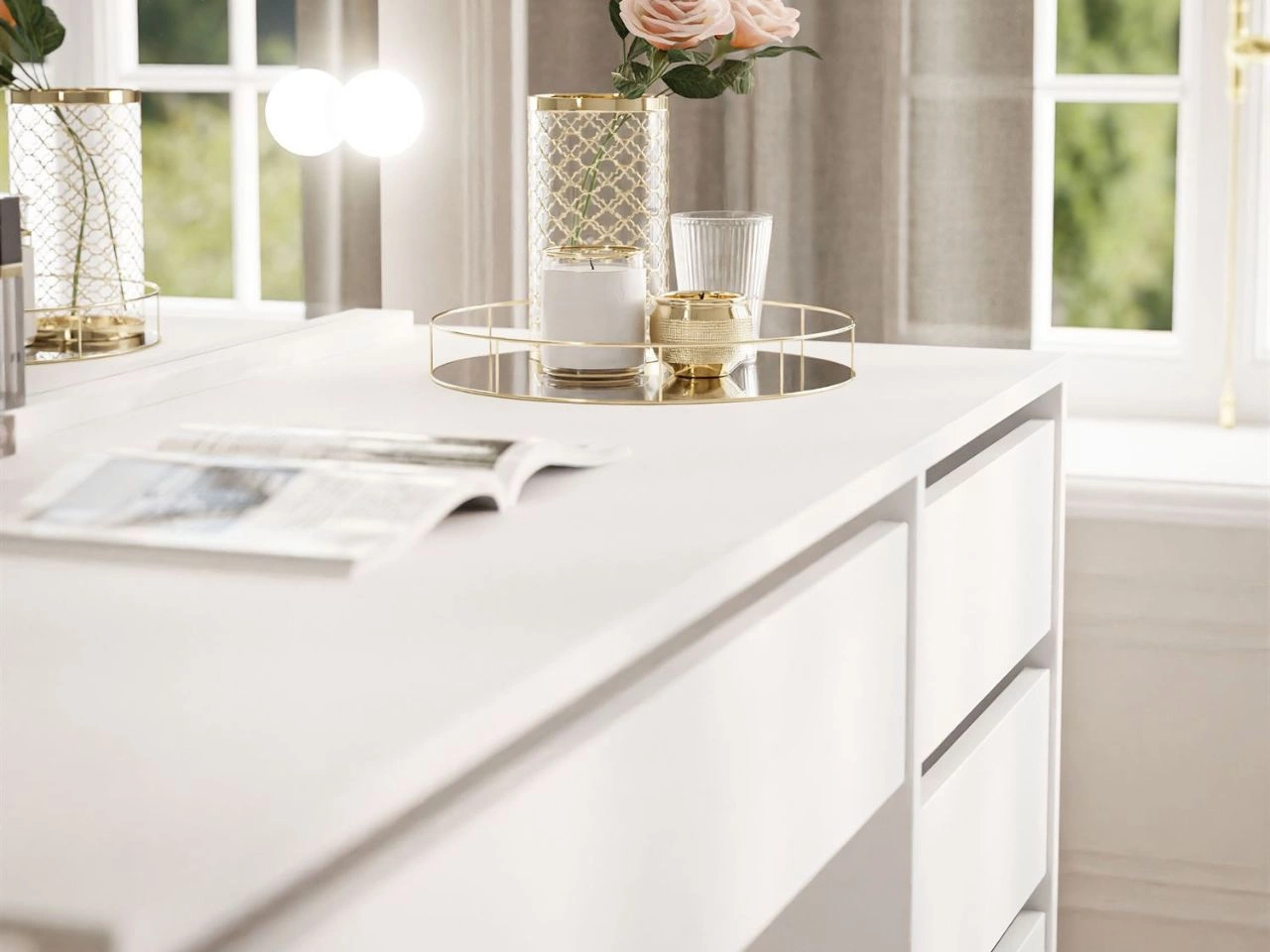 Toaletka z lustrem, szufladami i oświetleniem LED Melo Elite biały mat