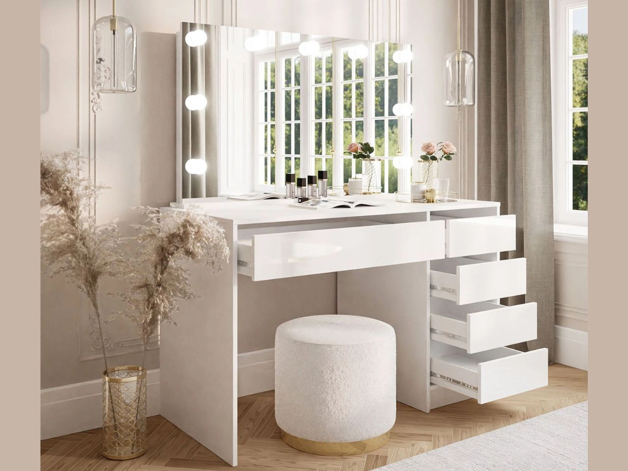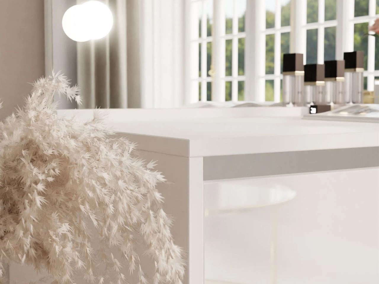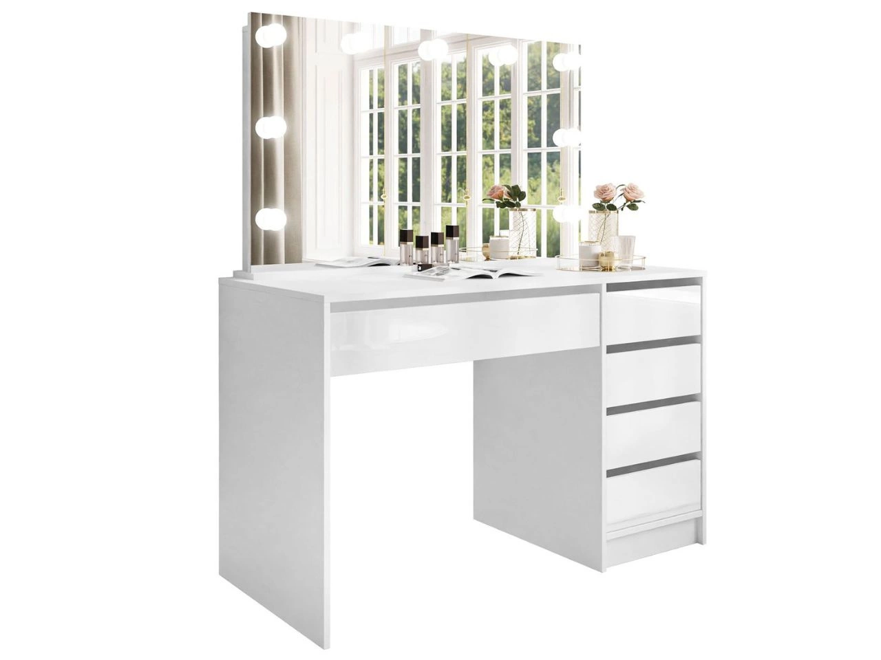 Toaletka z lustrem, szufladami i oświetleniem LED Melo Elite biały połysk