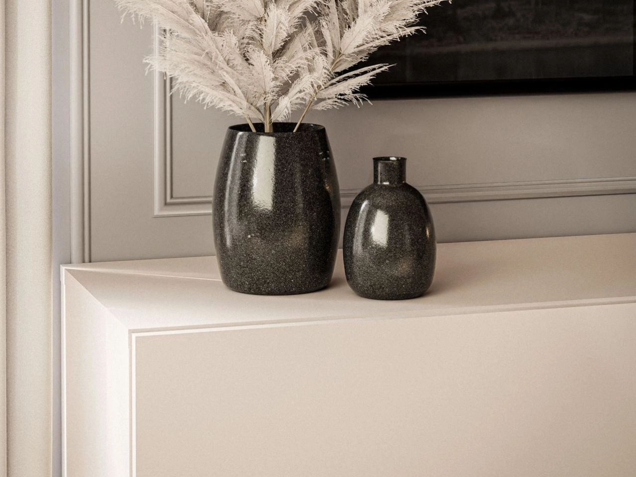 Odkryj szafkę RTV Aurelie w eleganckim odcieniu kaszmiru – połączenie nowoczesnego designu z funkcjonalnością. Wykonana z trwałej płyty laminowanej i zabezpieczona obrzeżem ABS, skutecznie chroni krawędzie przed uszkodzeniami, gwarantując długowieczność mebla.
