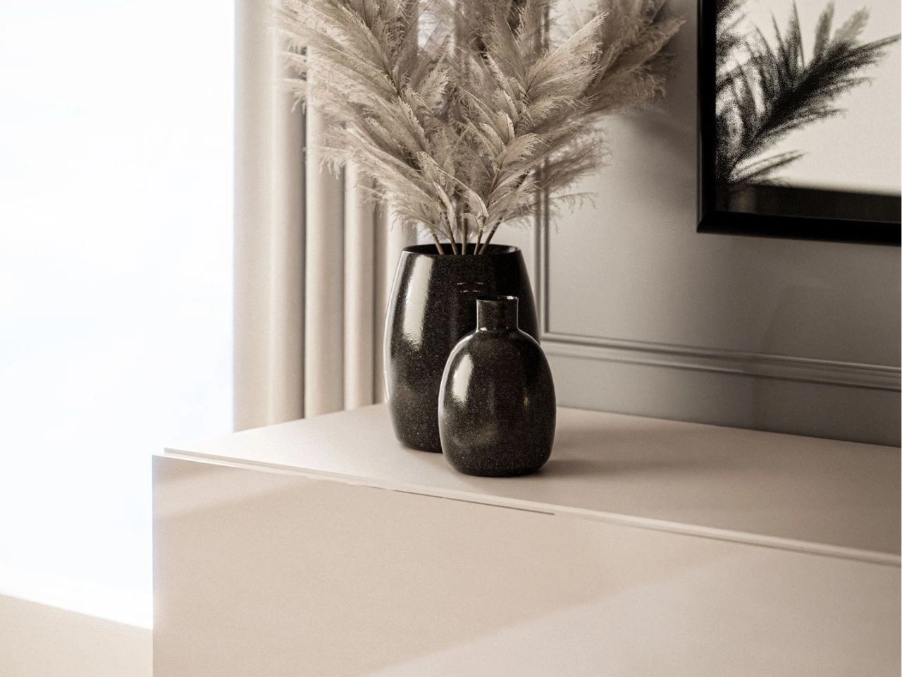 Wbudowane oświetlenie LED w zimnej bieli eksponuje mebel i nadaje mu designerskiego sznytu. Mechanizm push-to-open w połączeniu z uchylną klapą otwieraną w dół sprawia, że dostęp do wnętrza jest szybki i komfortowy – bez uchwytów, bez kompromisów w estetyce. Aurelie to szafka pod telewizor do salonu, która łączy funkcjonalność z wyrafinowanym stylem.