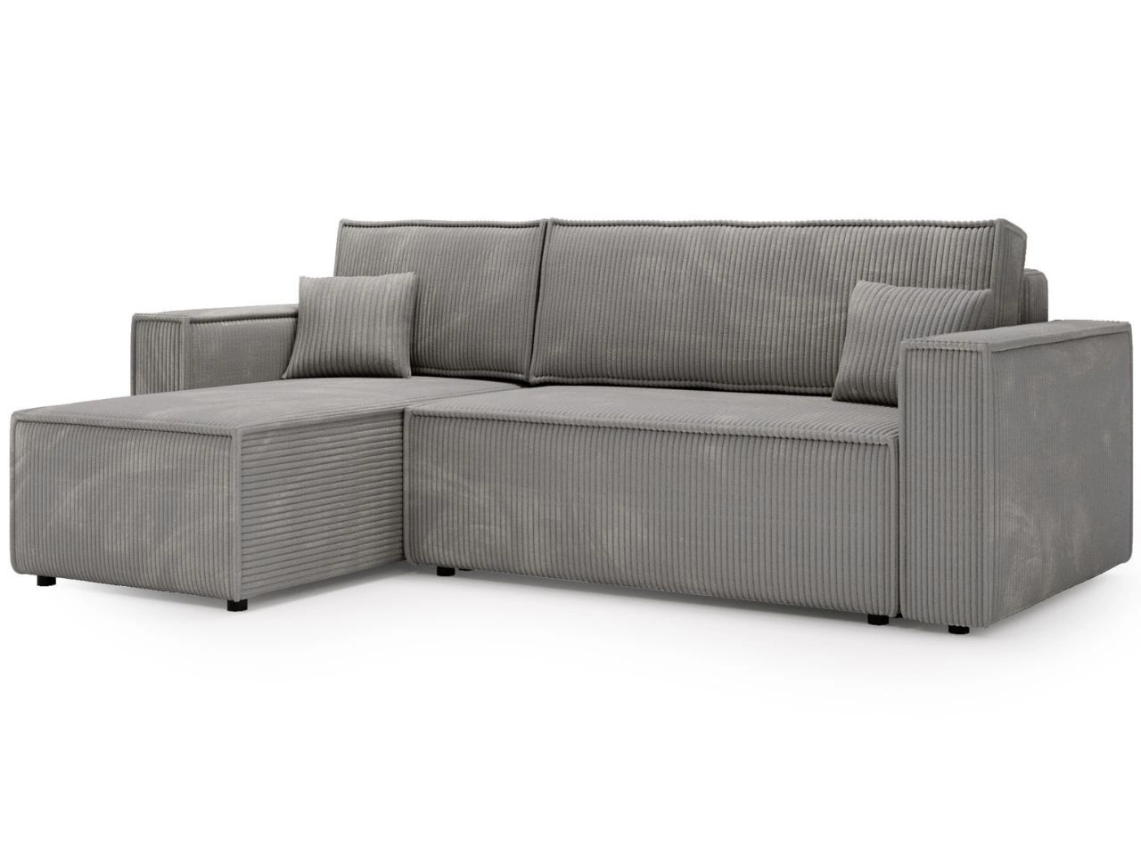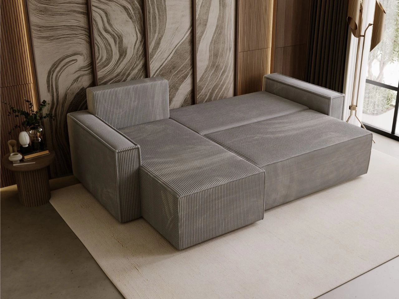 Nowoczesny rozkładany narożnik z funkcją spania i pojemnikiem Prato L uniwersalny Szary