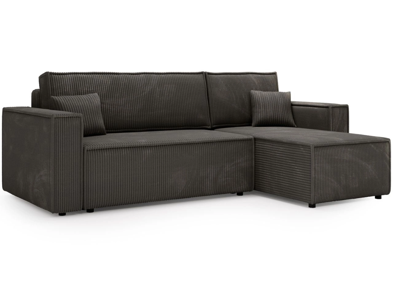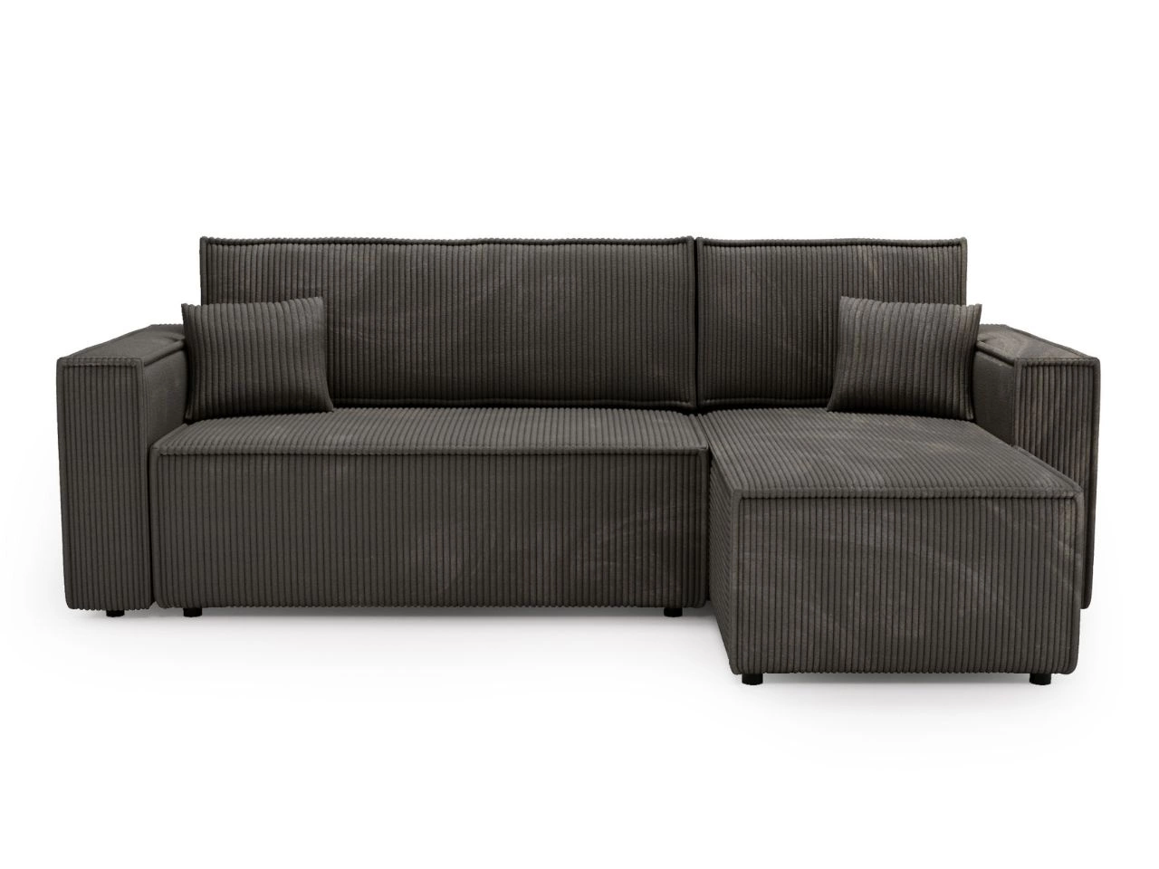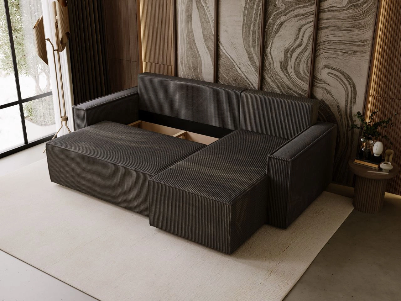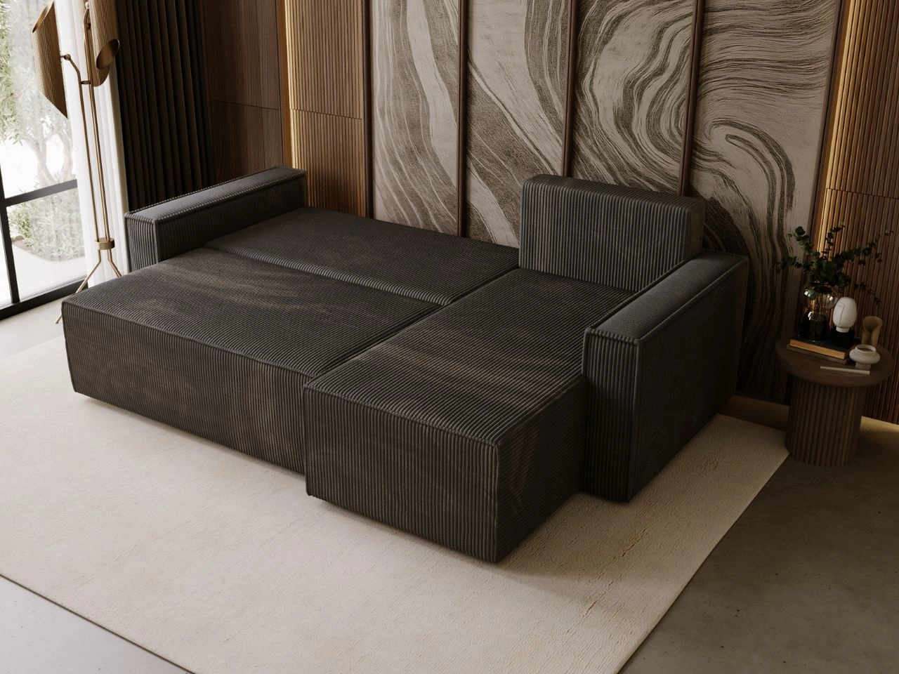 Nowoczesny rozkładany narożnik z funkcją spania i pojemnikiem Prato L prawy Ciemny szary