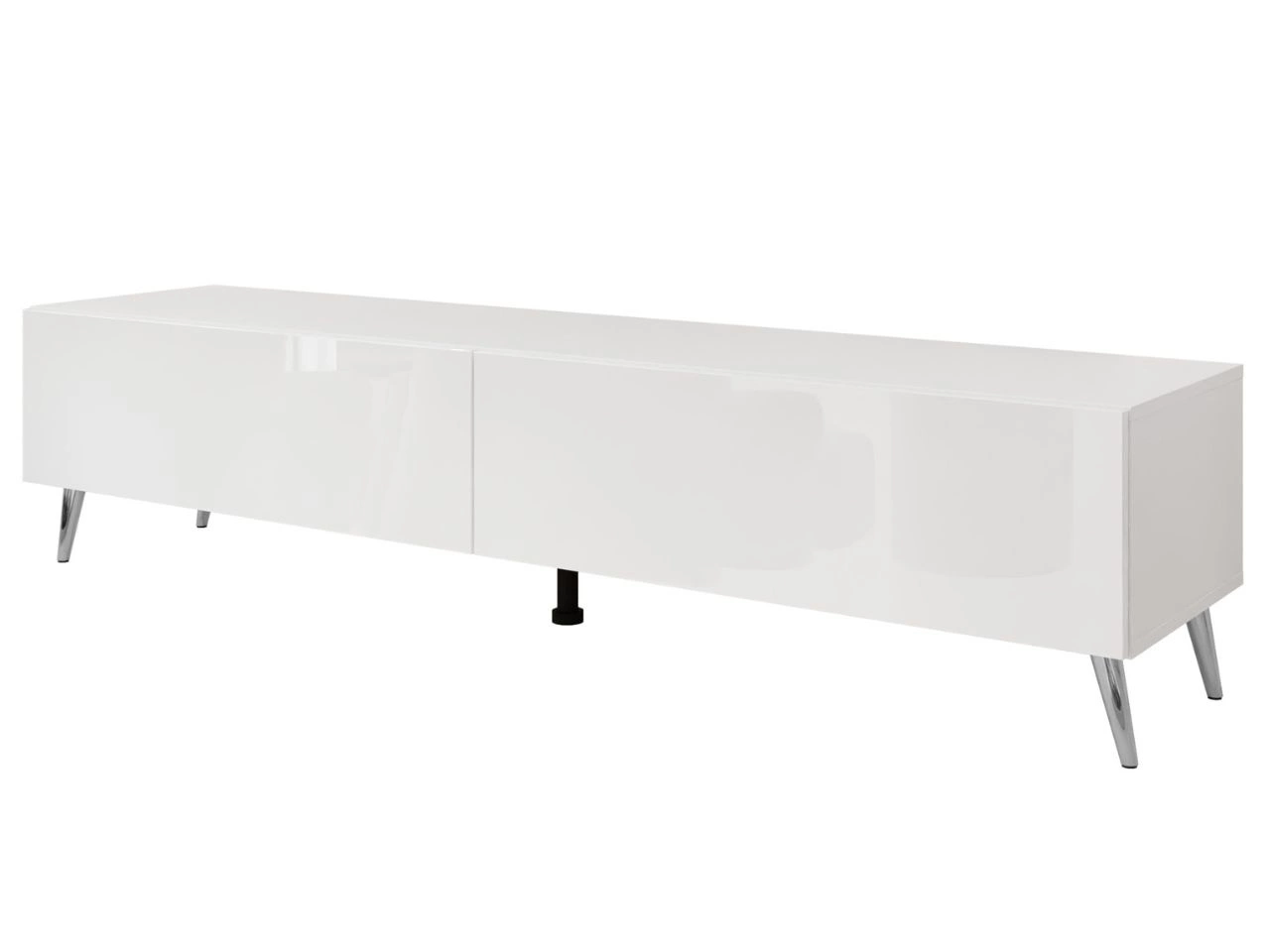 Szafka RTV pod telewizor z drzwiczkami na srebrnych nóżkach 175 cm z oświetleniem LED Sorelle Biały połysk