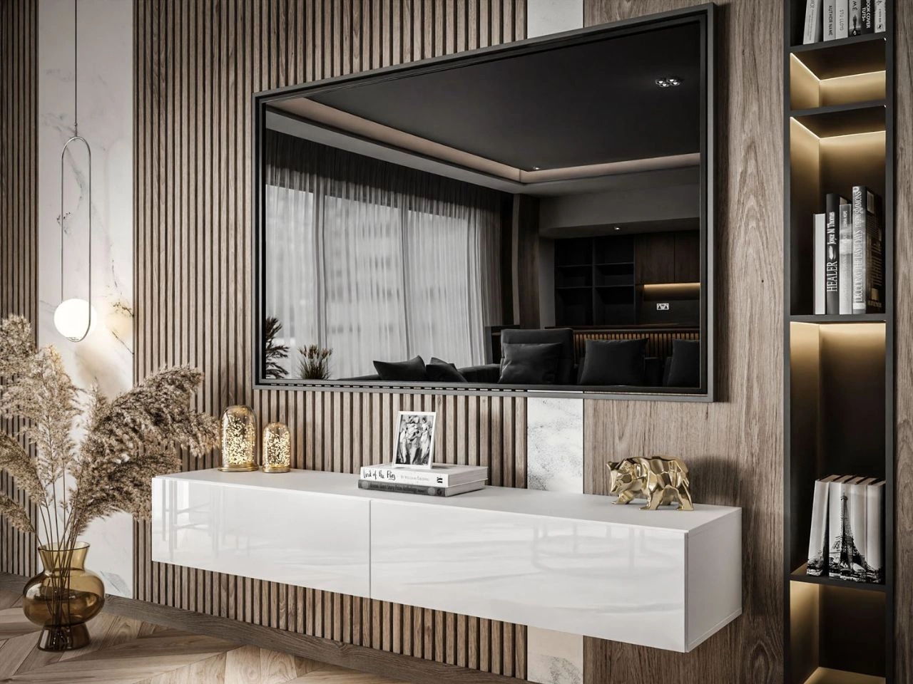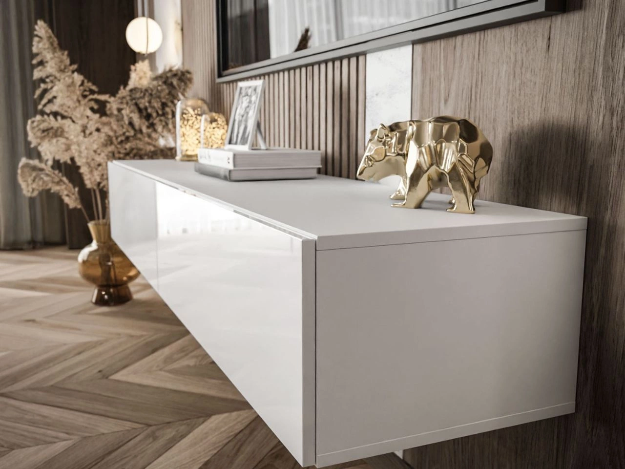 Szafka RTV dwudrzwiowa wisząca 175 cm z oświetleniem LED Sorelle Biały połysk