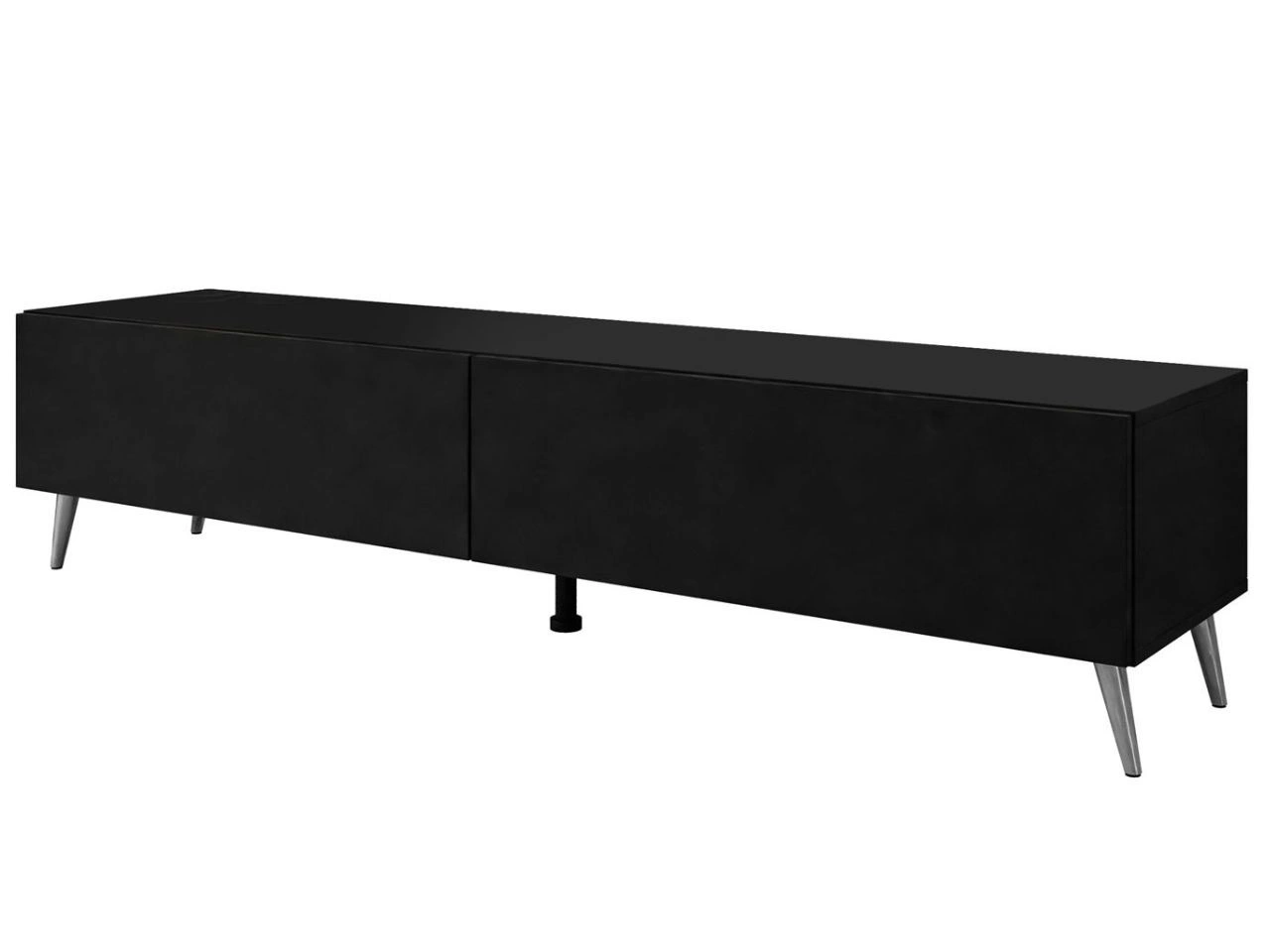 Szafka RTV dwudrzwiowa na srebrnych nóżkach 175 cm z oświetleniem LED Sorelle Czarny mat