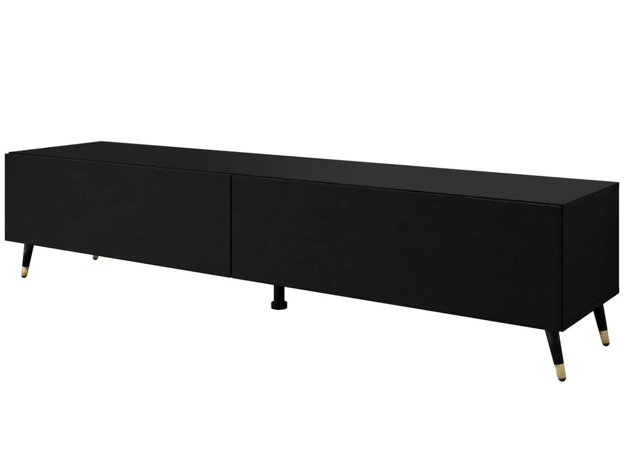 Szafka RTV dwudrzwiowa na czarno-złotych nóżkach 175 cm z oświetleniem LED Sorelle Czarny mat