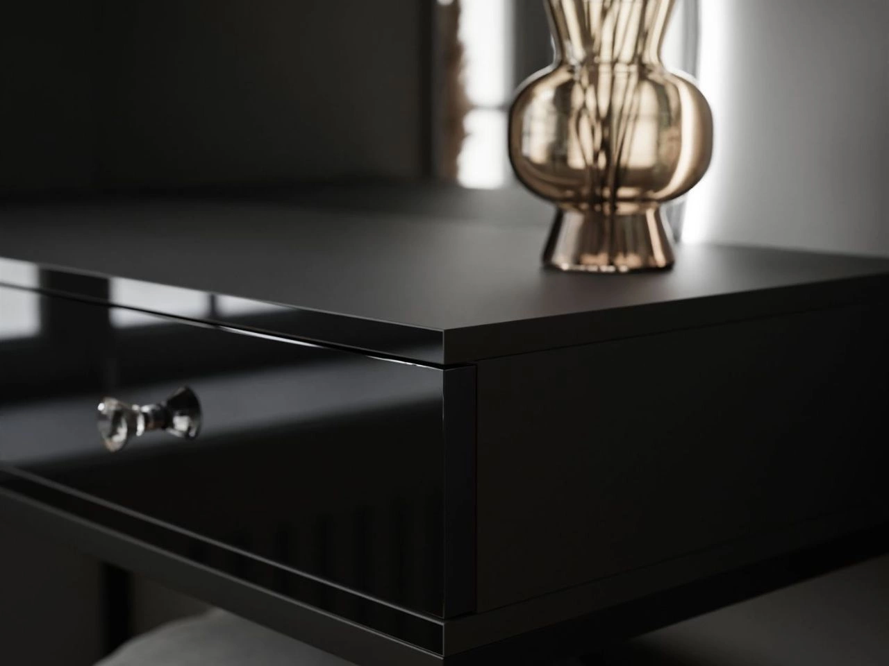 Toaletka kosmetyczna prawostronna z szufladami i oświetleniem LED na czarnych nogach Clarette Czarny połysk