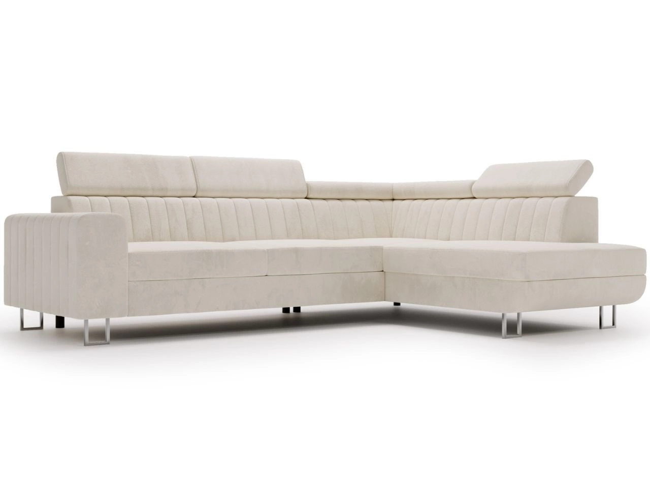 Model w kształcie litery L z prawostronną otomaną oferuje wygodne miejsce do relaksu. Siedzisko o wysokości 42 cm oraz regulowane zagłówki zapewniają wysoki komfort użytkowania. Dzięki starannie zaprojektowanej konstrukcji narożnik może pełnić rolę zarówno codziennego miejsca wypoczynku, jak i dodatkowego łóżka.
