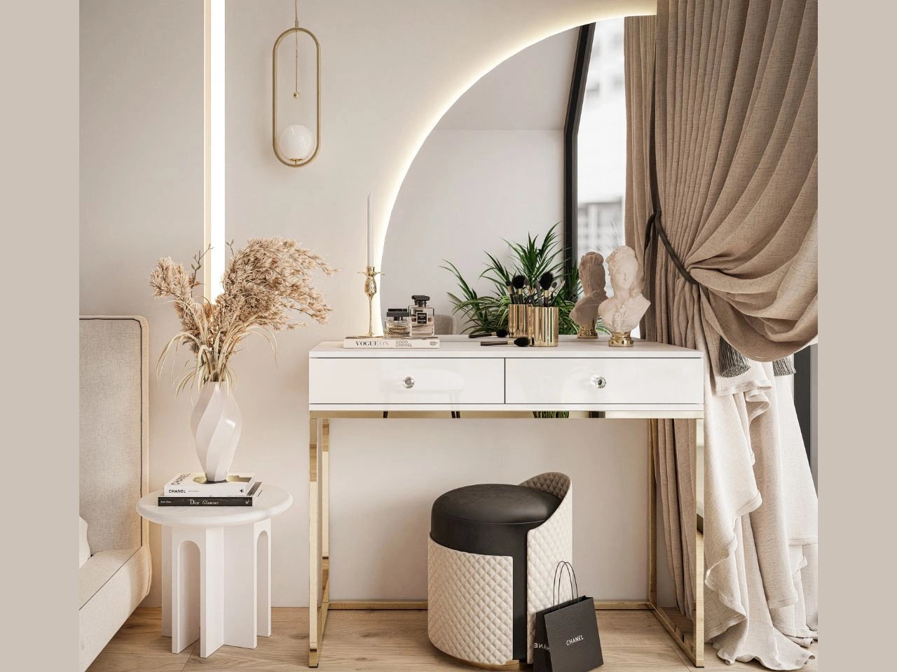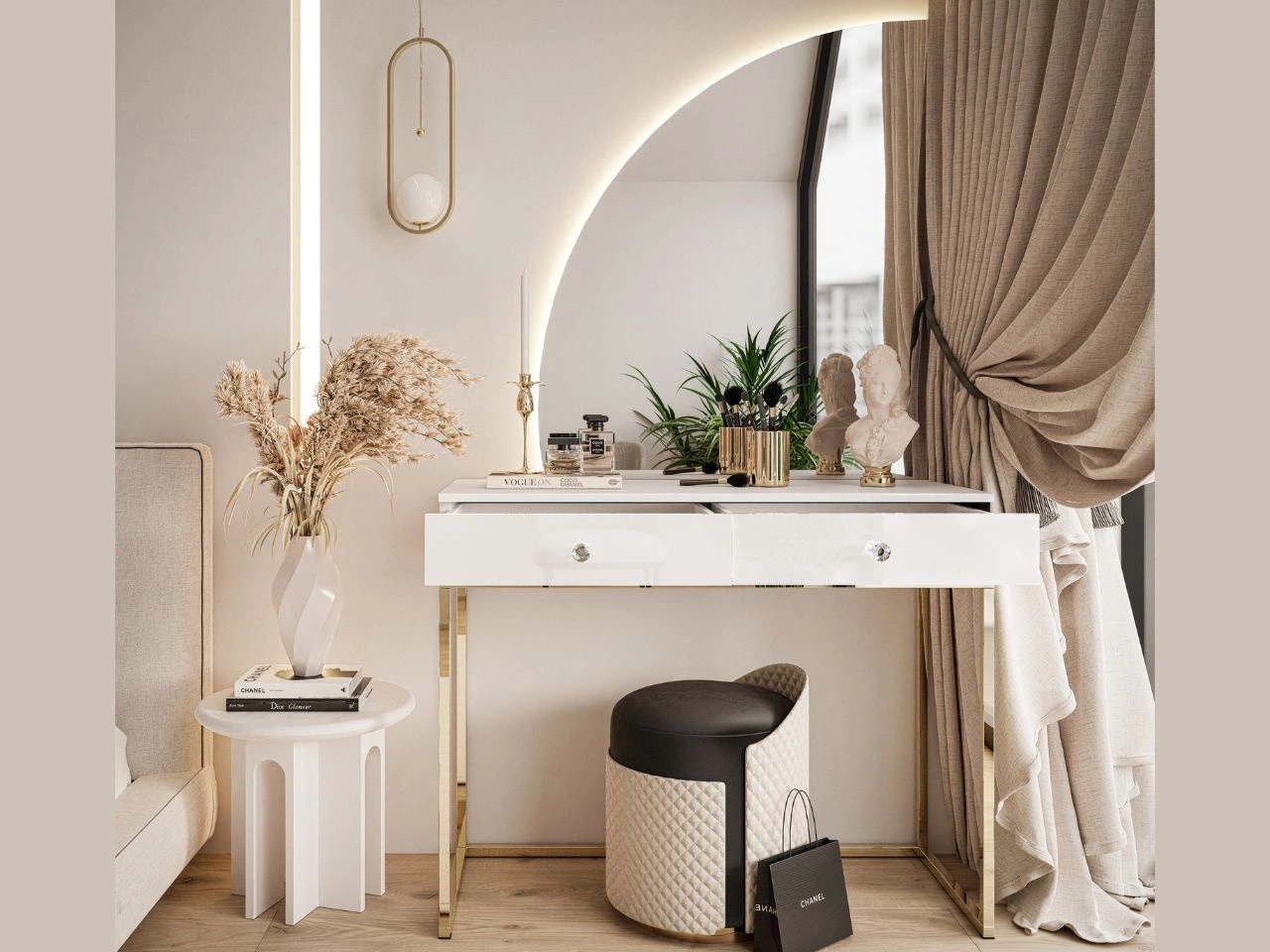 Szukasz mebla, który połączy elegancję, funkcjonalność i nowoczesny charakter? Toaletka Clarette z lustrem i oświetleniem LED to idealne rozwiązanie dla osób ceniących minimalistyczny design i praktyczne detale. Jej subtelna forma i dekoracyjne wykończenie sprawiają, że świetnie odnajdzie się w aranżacjach nowoczesnych, glamour czy skandynawskich, nadając wnętrzu wyjątkowego stylu.