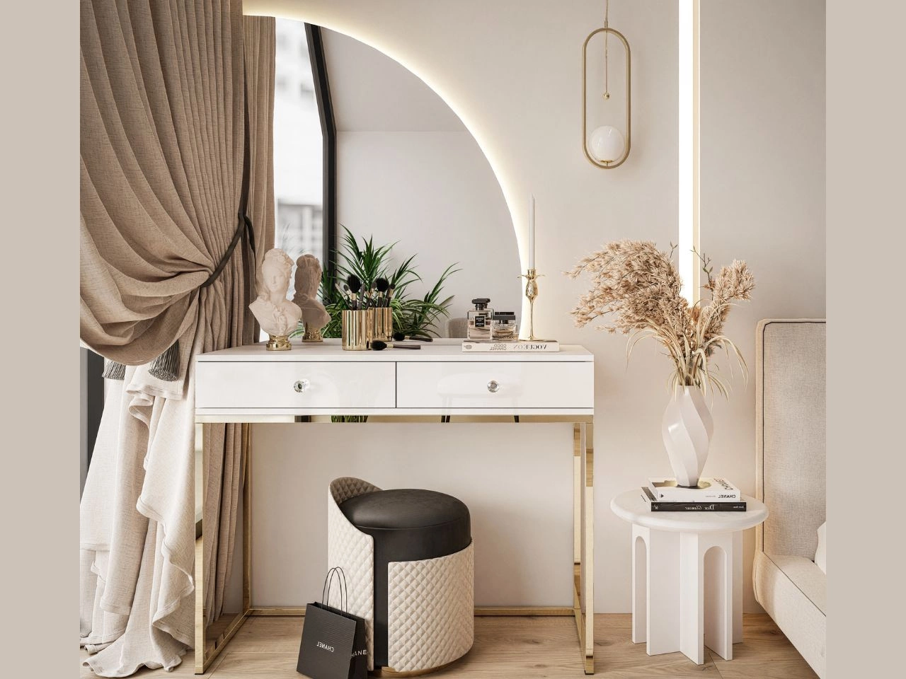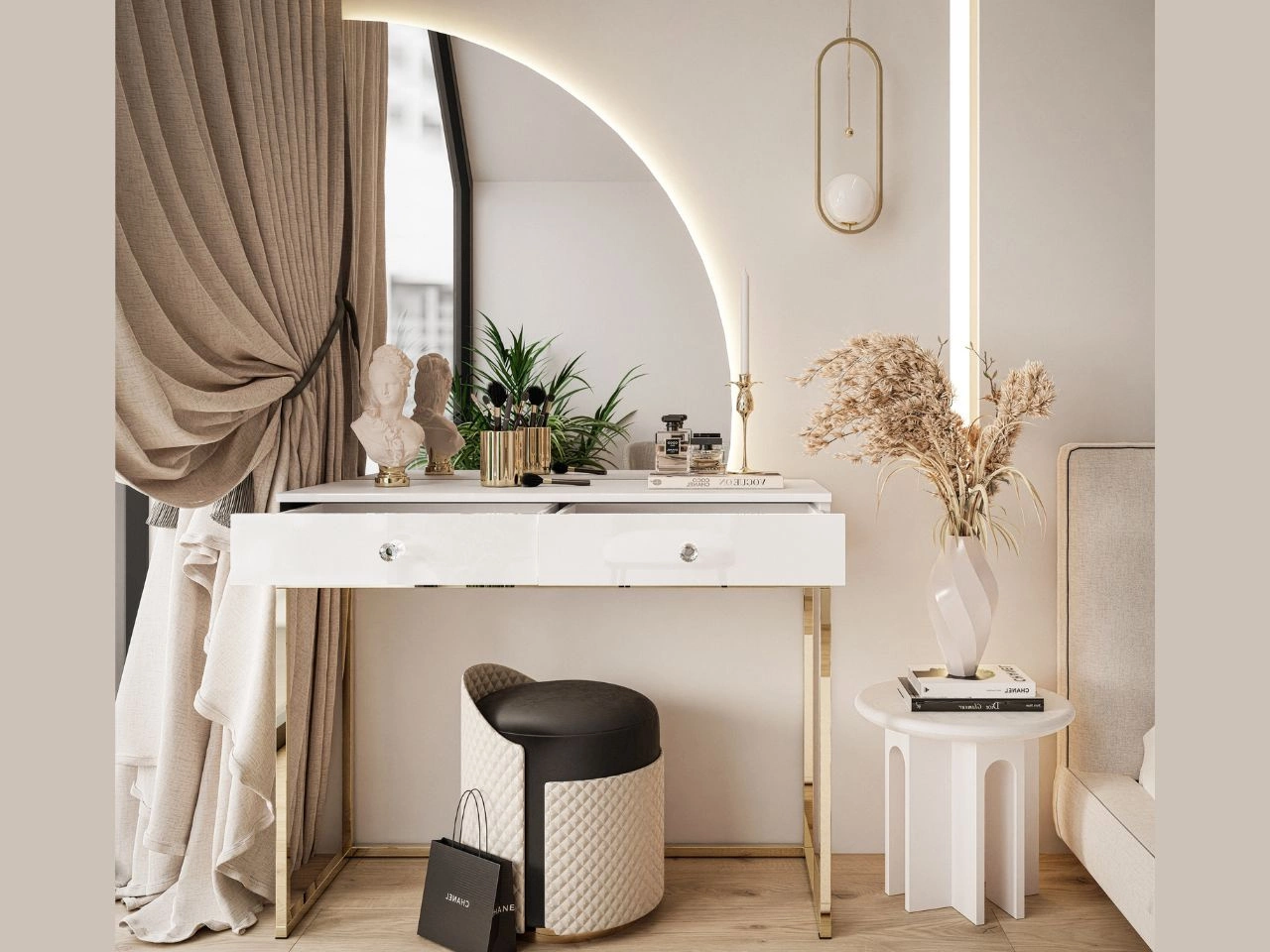 Szukasz mebla, który połączy elegancję, funkcjonalność i nowoczesny charakter? Toaletka Clarette z lustrem i oświetleniem LED to idealne rozwiązanie dla osób ceniących minimalistyczny design i praktyczne detale. Jej subtelna forma i dekoracyjne wykończenie sprawiają, że świetnie odnajdzie się w aranżacjach nowoczesnych, glamour czy skandynawskich, nadając wnętrzu wyjątkowego stylu.