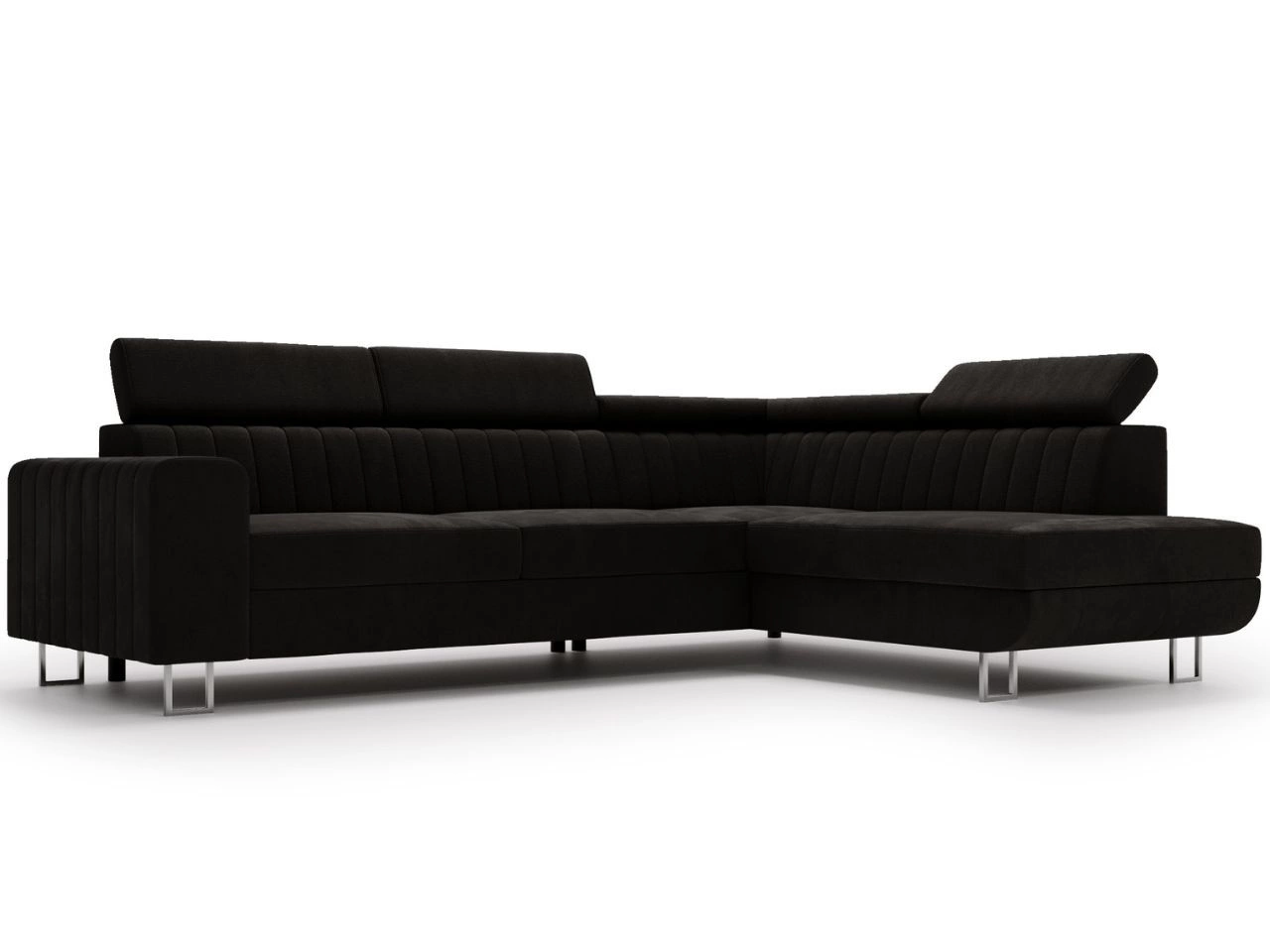 Narożnik z funkcją spania i pojemnikiem Berona prawy Czarny