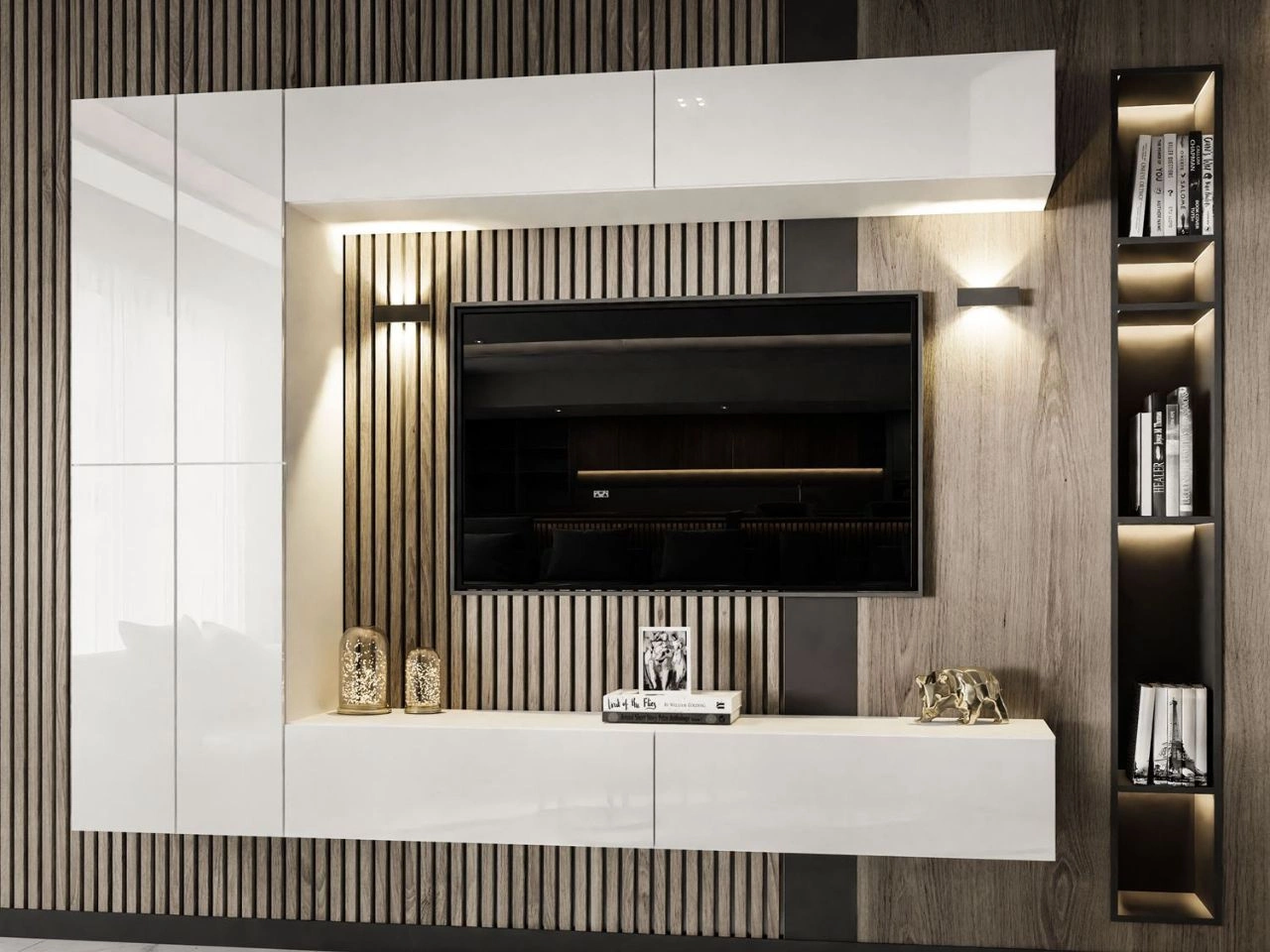 Meblościanka RTV wisząca z oświetleniem LED do salonu Sorelle Biały połysk