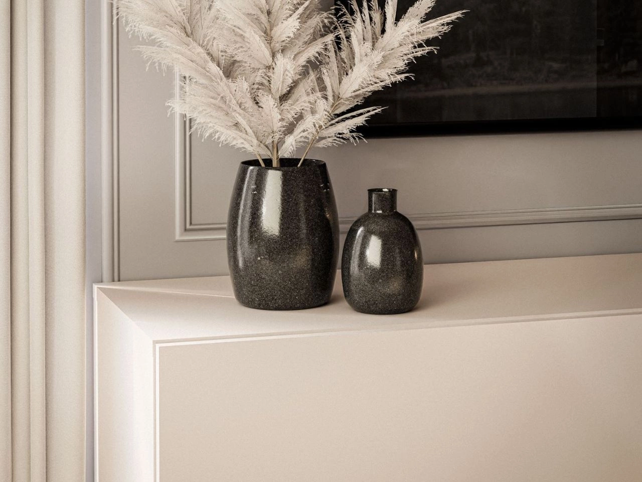 Model w kolorze kaszmir mat zachwyca subtelną elegancją. Matowe wykończenie korpusu i frontów sprawia, że mebel prezentuje się niezwykle stylowo, jednocześnie wprowadzając do salonu przytulny nastrój. Uchylna klapa otwierana w dół, wspierana przez siłowniki, zapewnia płynne i wygodne użytkowanie, a innowacyjny system push-to-open umożliwia otwarcie frontu lekkim dotknięciem – bez uchwytów i bez zakłócania minimalistycznej formy.